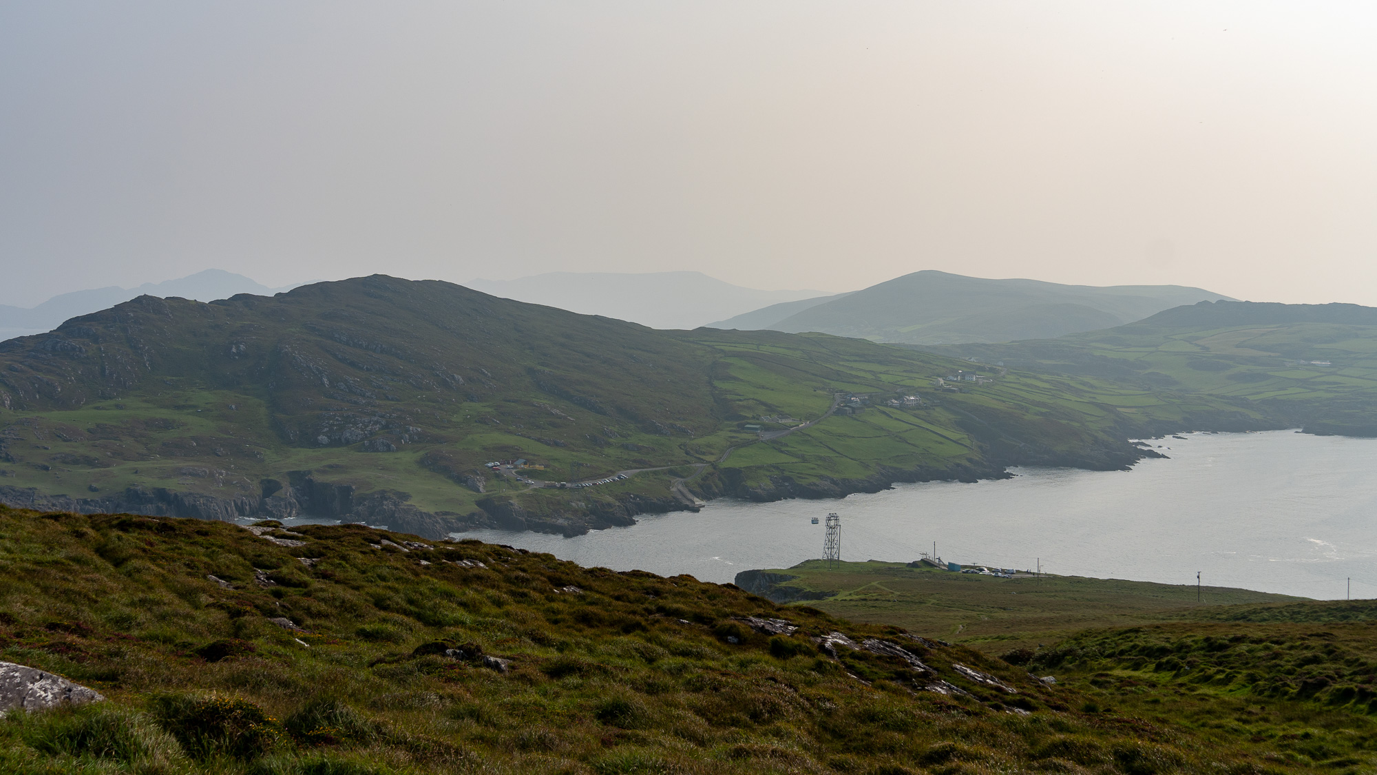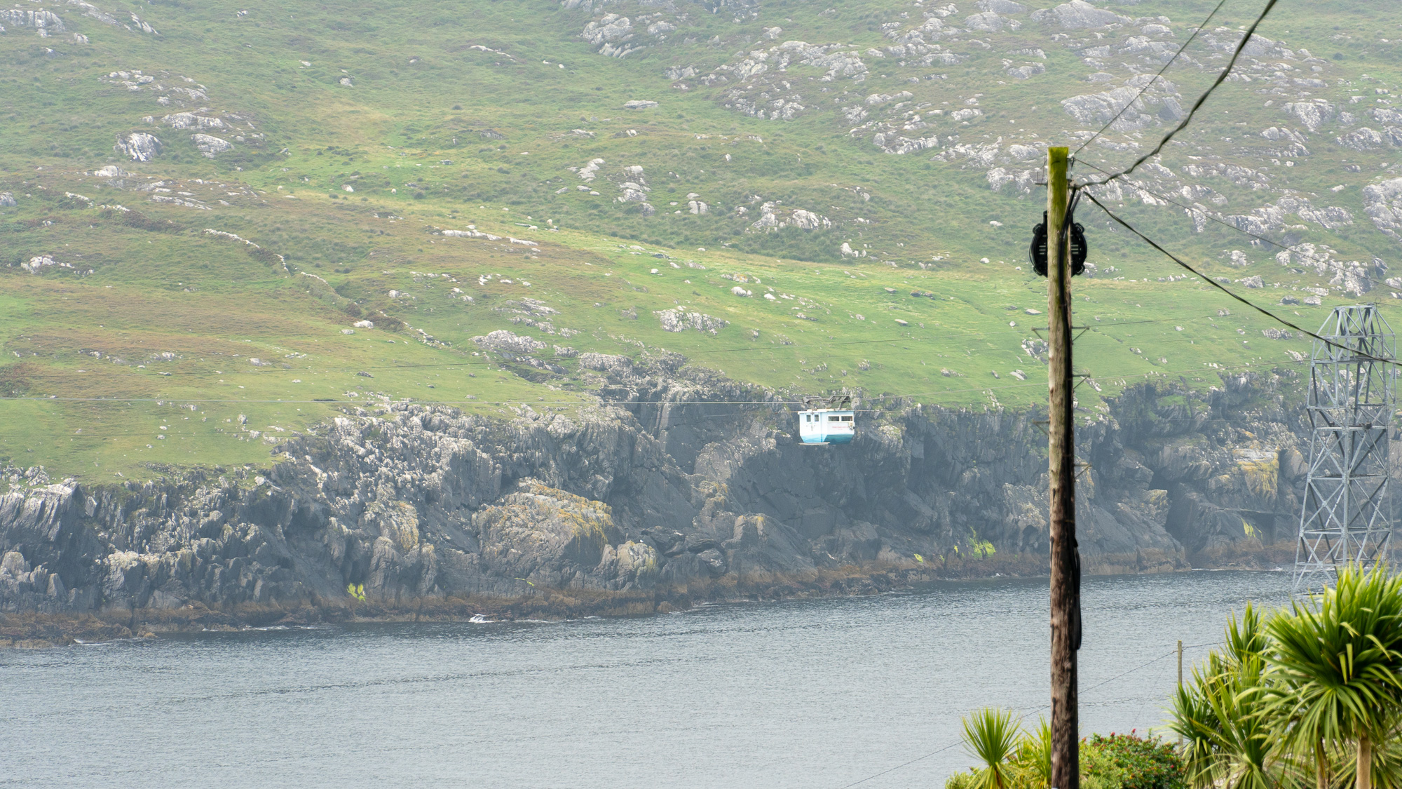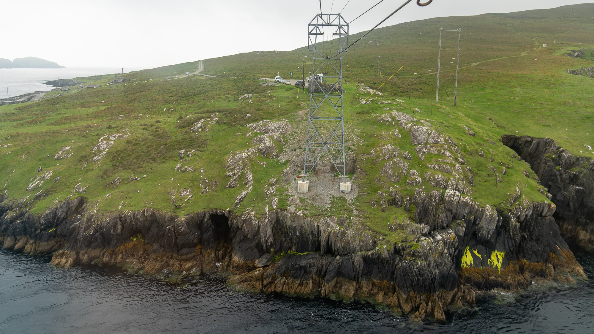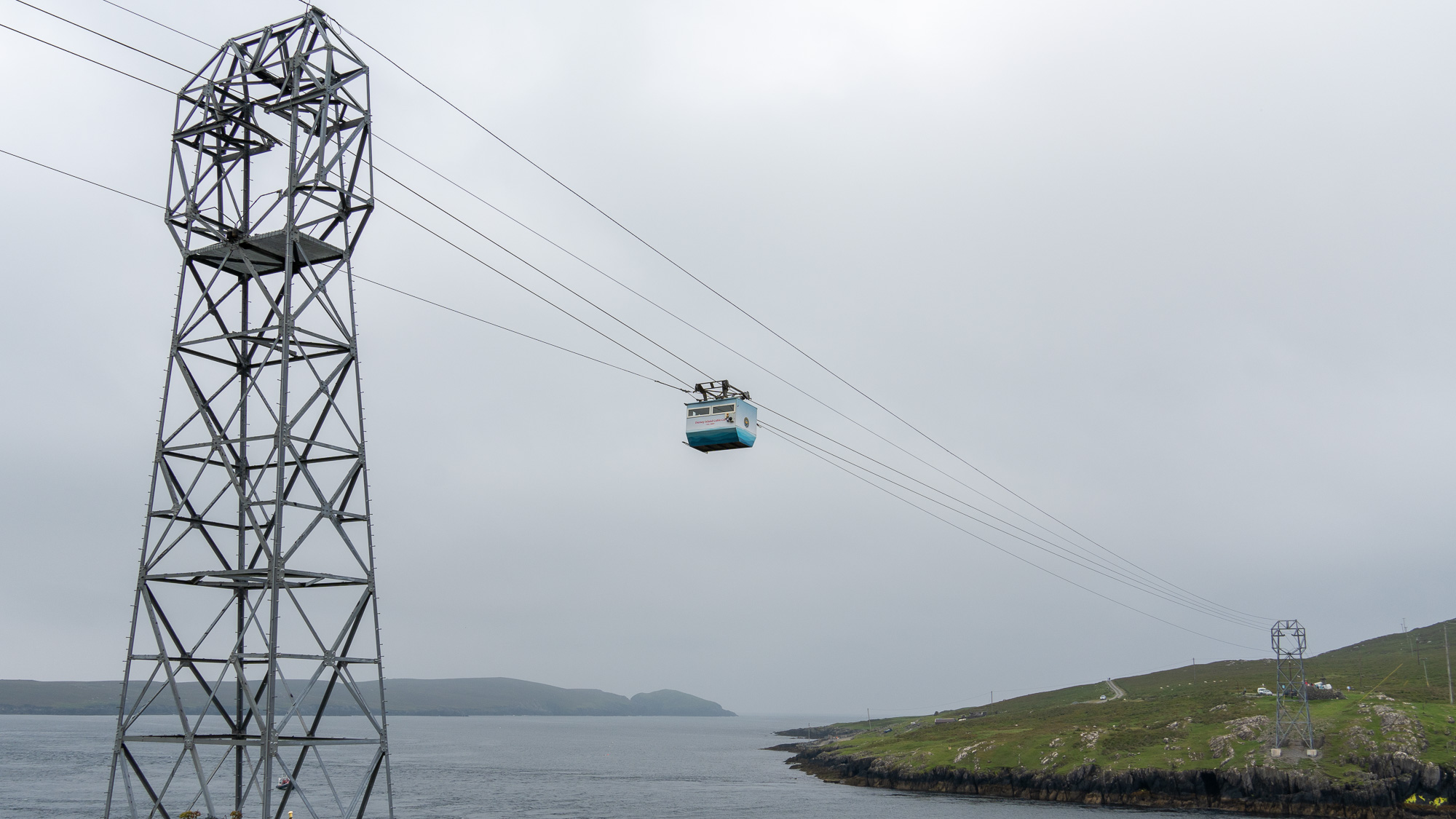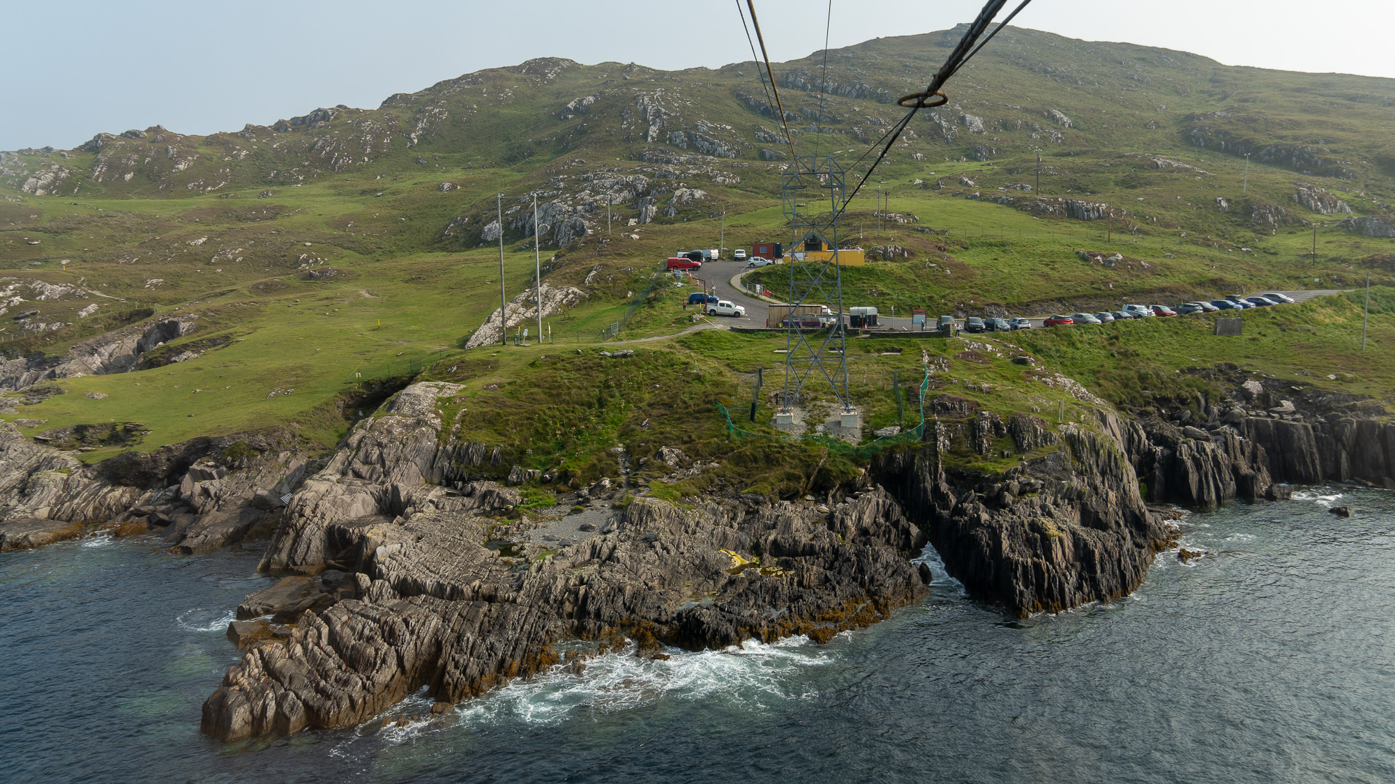 Jetzt wollen wir rüber zu Dursey Island. Ob die Insel so spektakulär ist, wissen wir gar nicht. Aber der Weg dorthin ist es in jedem Fall. Per Seilbahn gibt es genau einen Waggon, der die Personen auf die Insel befördert oder von dort zurück. Das wollen wir uns natürlich nicht entgehen lassen. Zudem ist dies die einzige Seilbahn in ganz Irland!