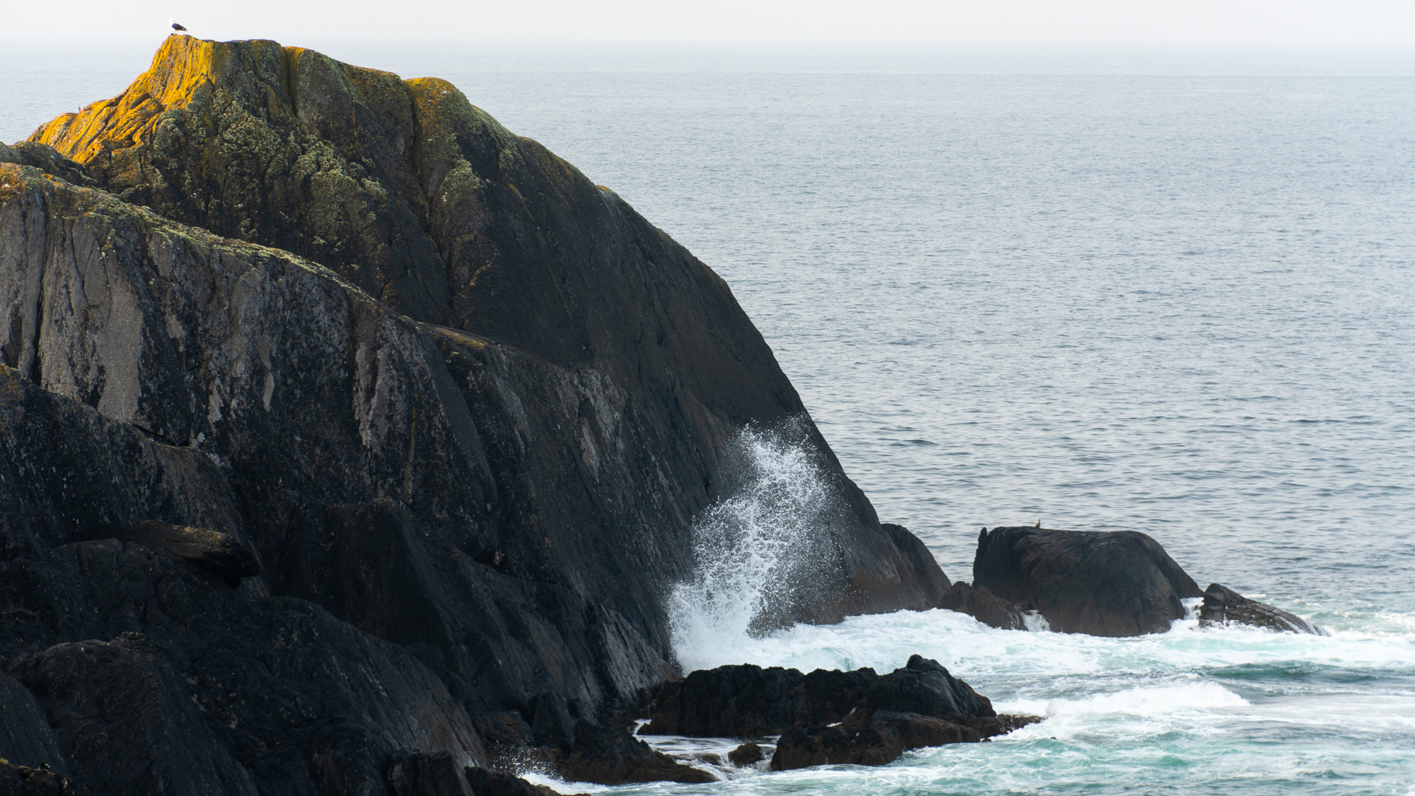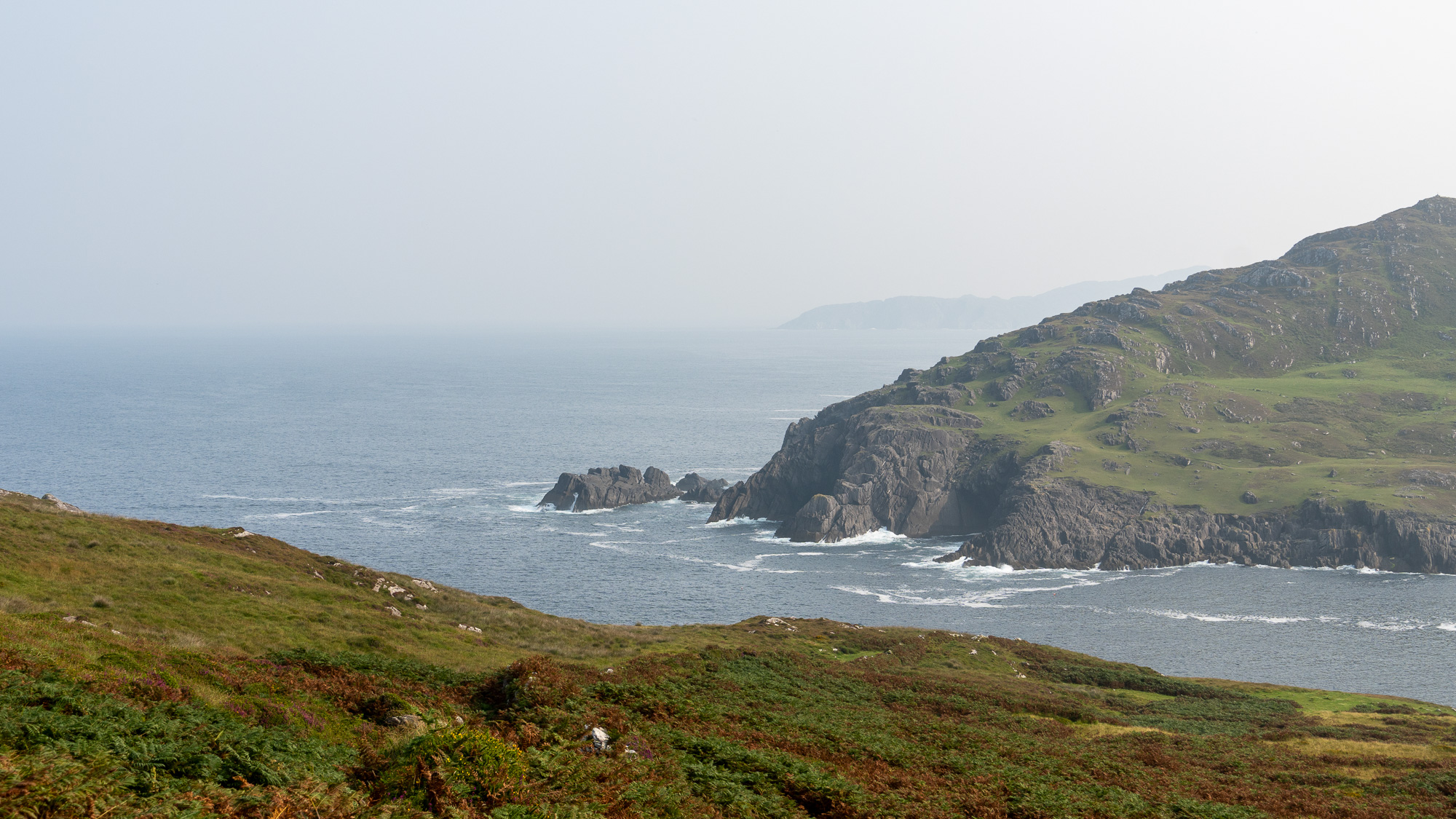Wir wandern nun nah an niedrigen Klippen und die Aussicht ist toll, nur in der Ferne ist zunehmend weniger zu erkennen. So kennen wir das ja inzwischen…