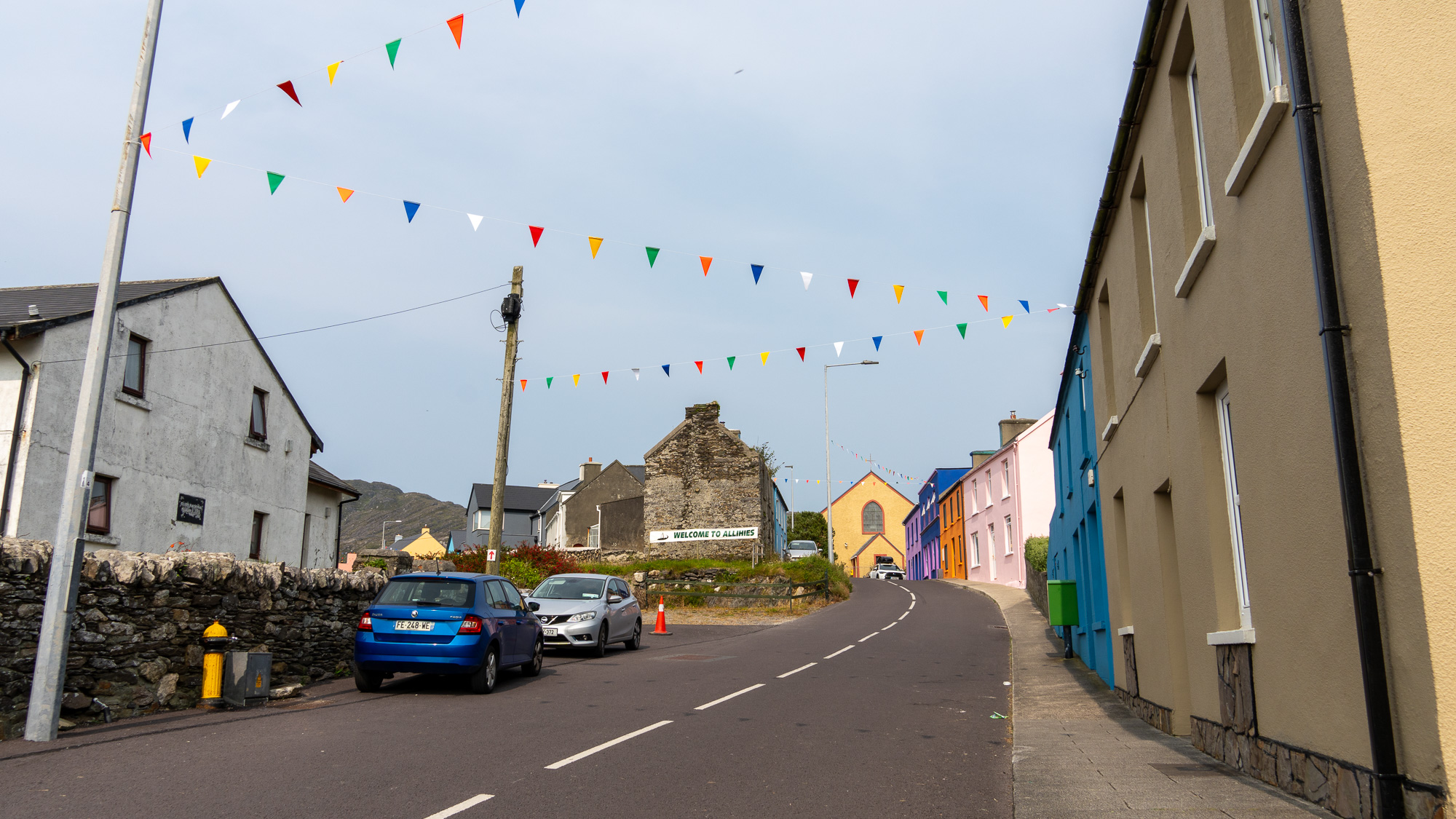 Der kleine Ort wird unser Zwischenziel, damit wir unsere Wasservorräte auffüllen können. Eyeries ist wieder ein sehr hübscher kleiner Ort. Die vielen bunten Häuser, die hier typisch sind, bieten einen tollen Anblick.