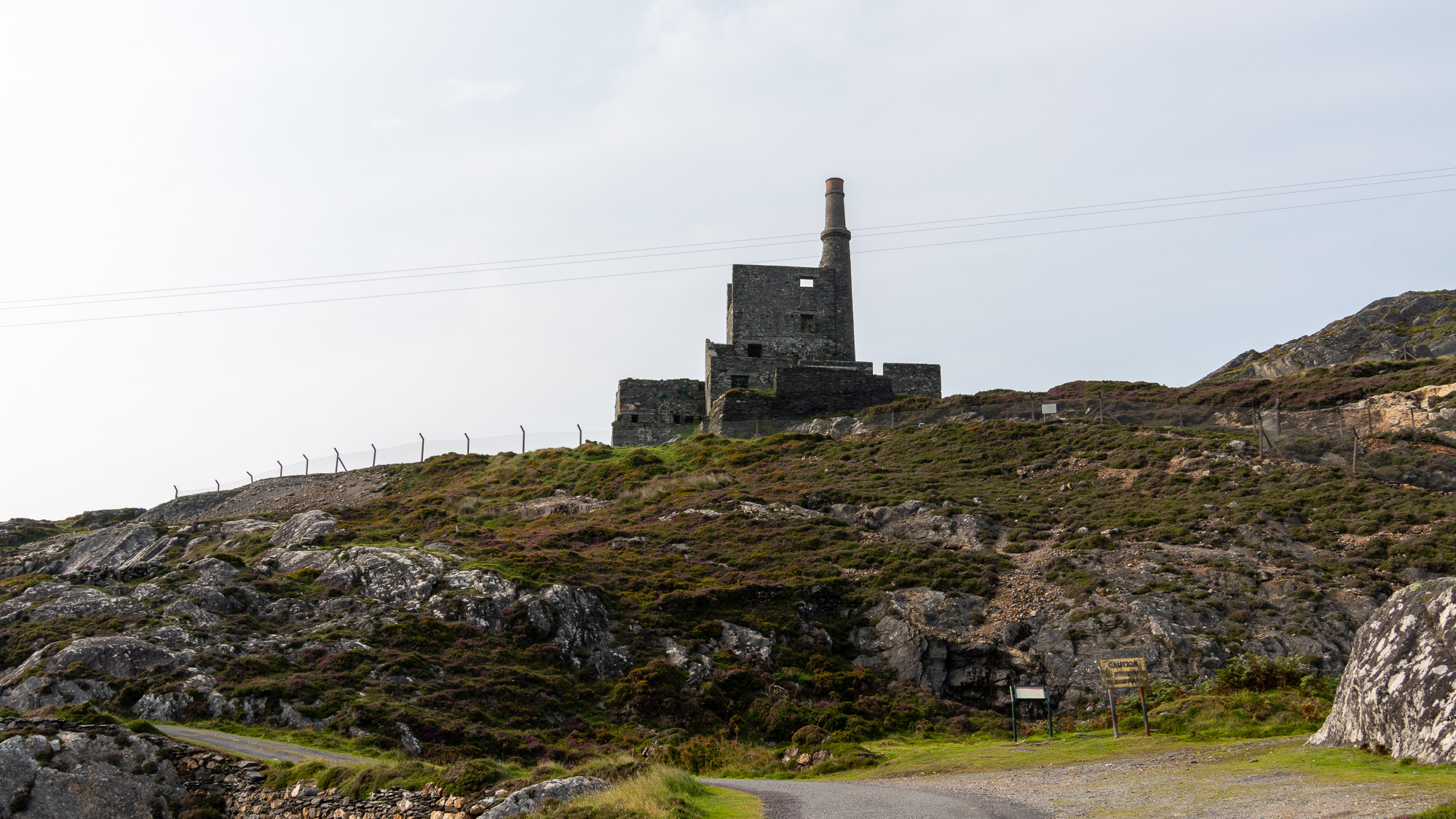 Allihies ist nämlich eine Bergbaustadt. Bis in die 1860er wurden hier in den Minen Kupfer und, als Nebenprodukt, Quarz abgebaut. Wir sehen alte Schächte, ein paar Ruinen von Maschinenhäusern und schlängeln uns dazwischen bergauf.