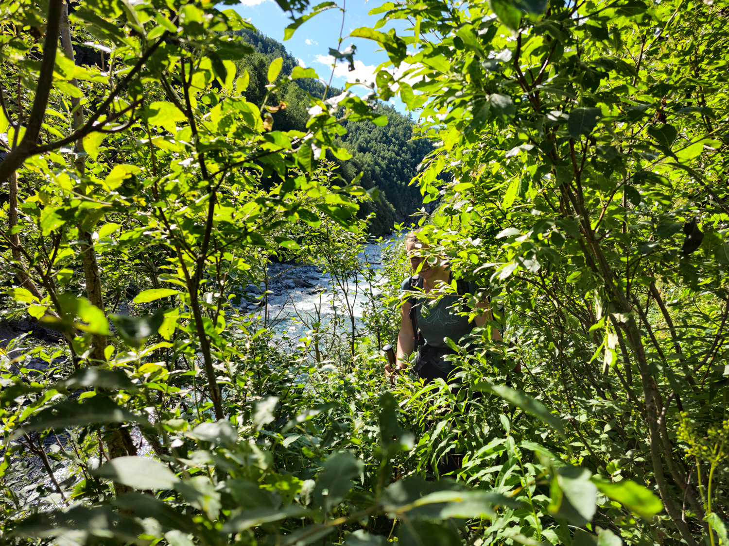 Bäume, Sträucher und Pflanzen sind hier so hoch, dass ich teilweise im Grün verschwinde.