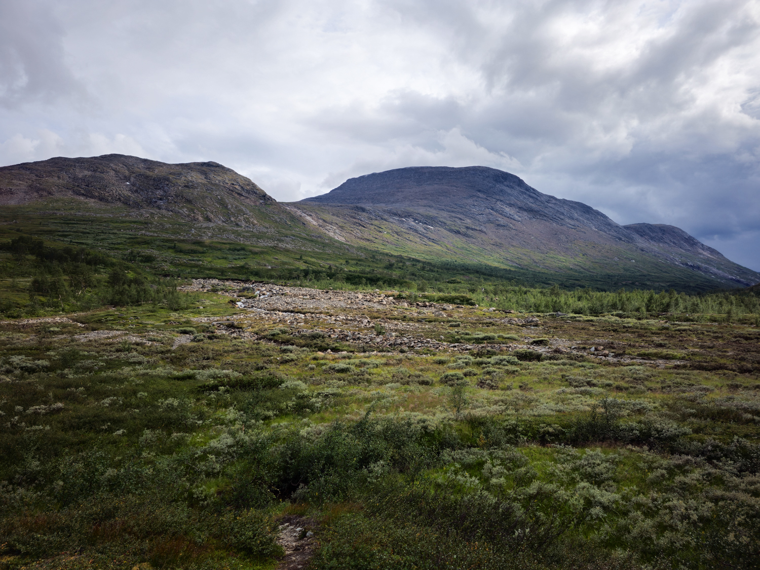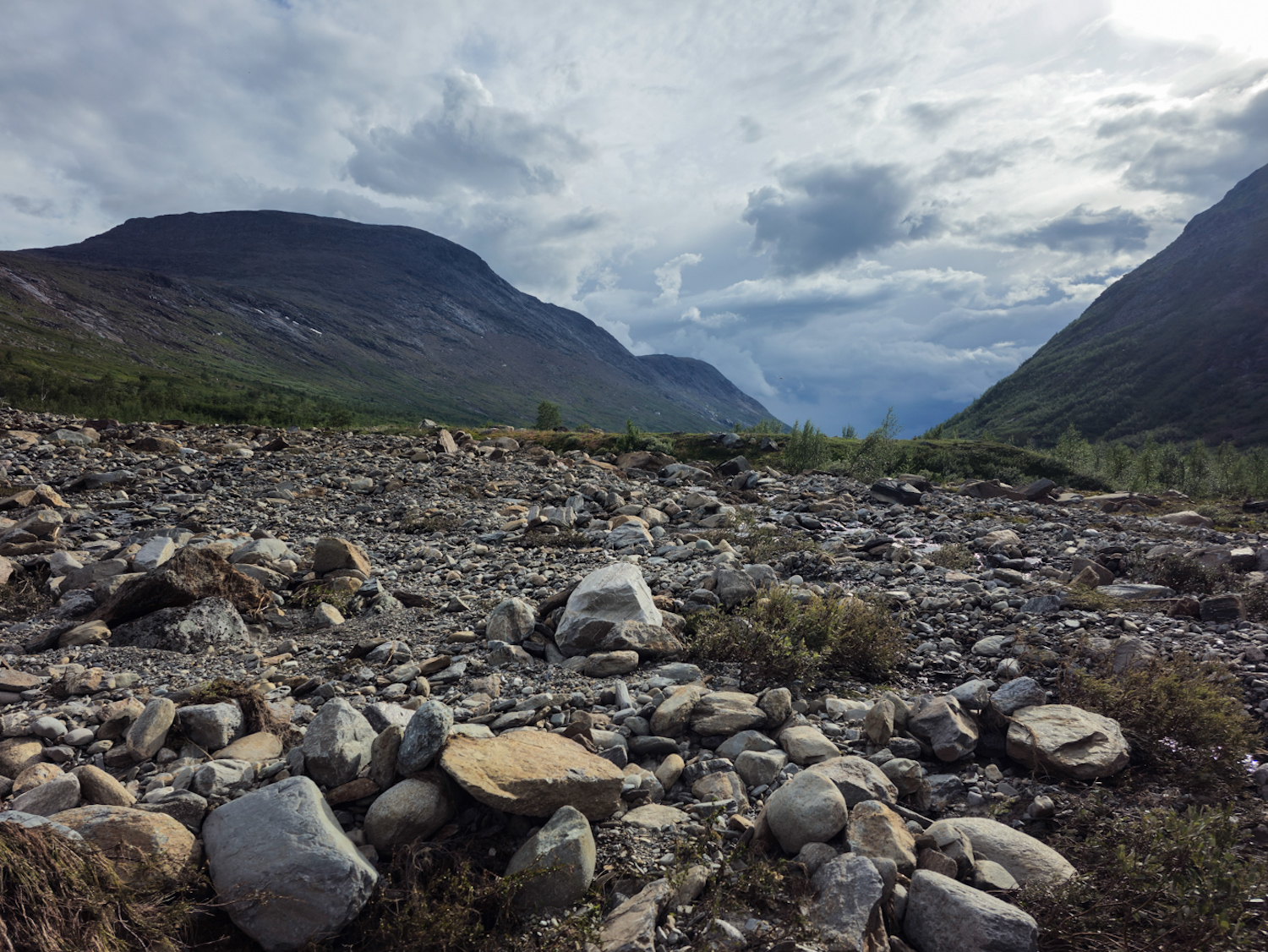 Bei dem Unwetter hat sich ein Fluss, der Arggalájvágge, einen neuen Ort zum fließen gesucht. Dass sein altes Flussbett überbrückt war, hat ihn wohl nicht gekümmert. Wir sind also gespannt, was uns erwartet.