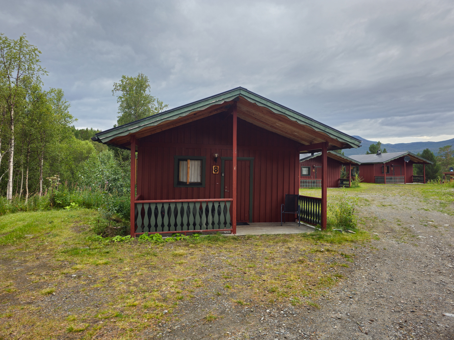 Und so schaffen wir es tatsächlich, um 18 Uhr am Sulitjelma Turistsenter anzukommen. Wir stehen gerade unter dem Vordach der Rezeption, da öffnet der Himmel seine Schleusen. Aber das kann uns nun zum Glück egal sein.