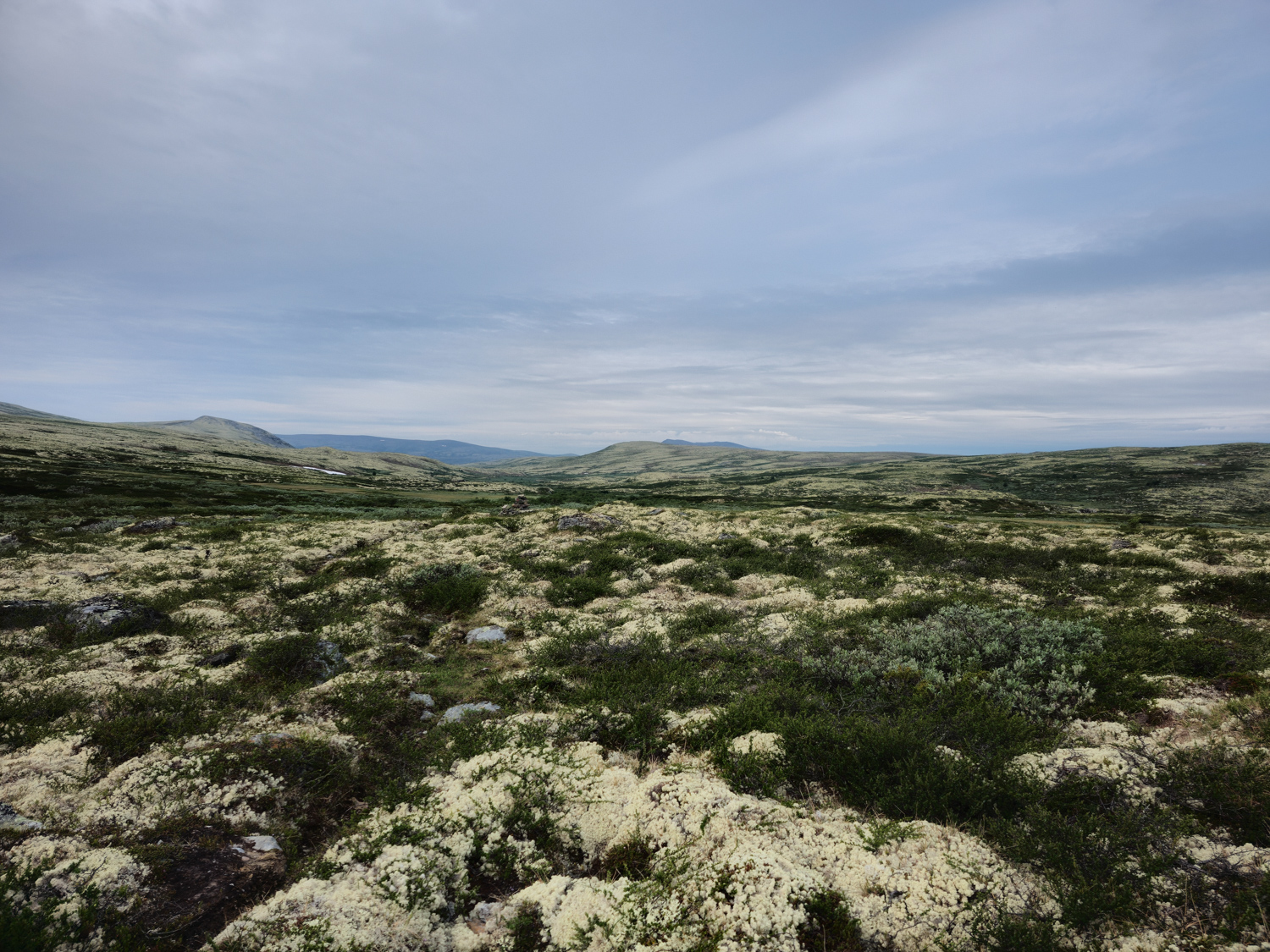 Zum Glück können wir den Weg trotzdem noch erkennen. Der führt uns heute über die weite Ebene der Femundsmarka.