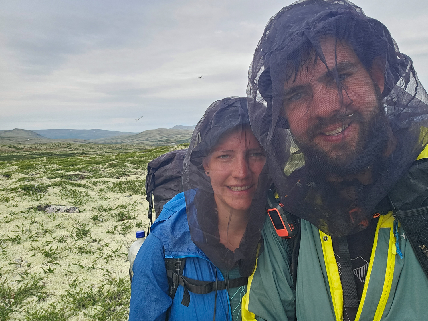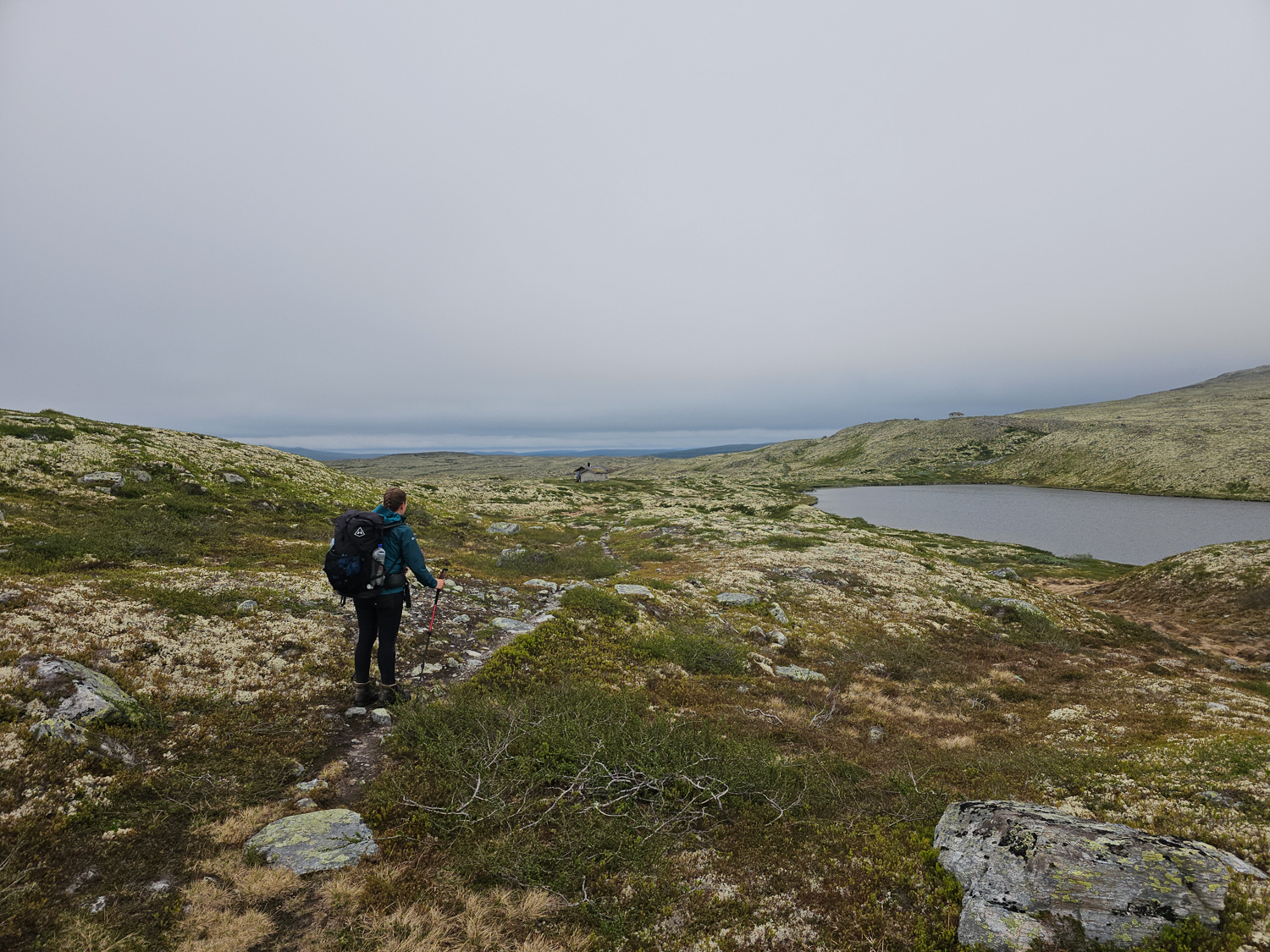 Allzu spektakulär ist es hier aber nicht. Unser erstes Ziel ist die Hodalen-Hütte. Bis dahin sind es zähe 16 km. So richtig gut läuft es nicht. Kein Wind, zu viel Wärme und viel zu viele fliegende Tiere.