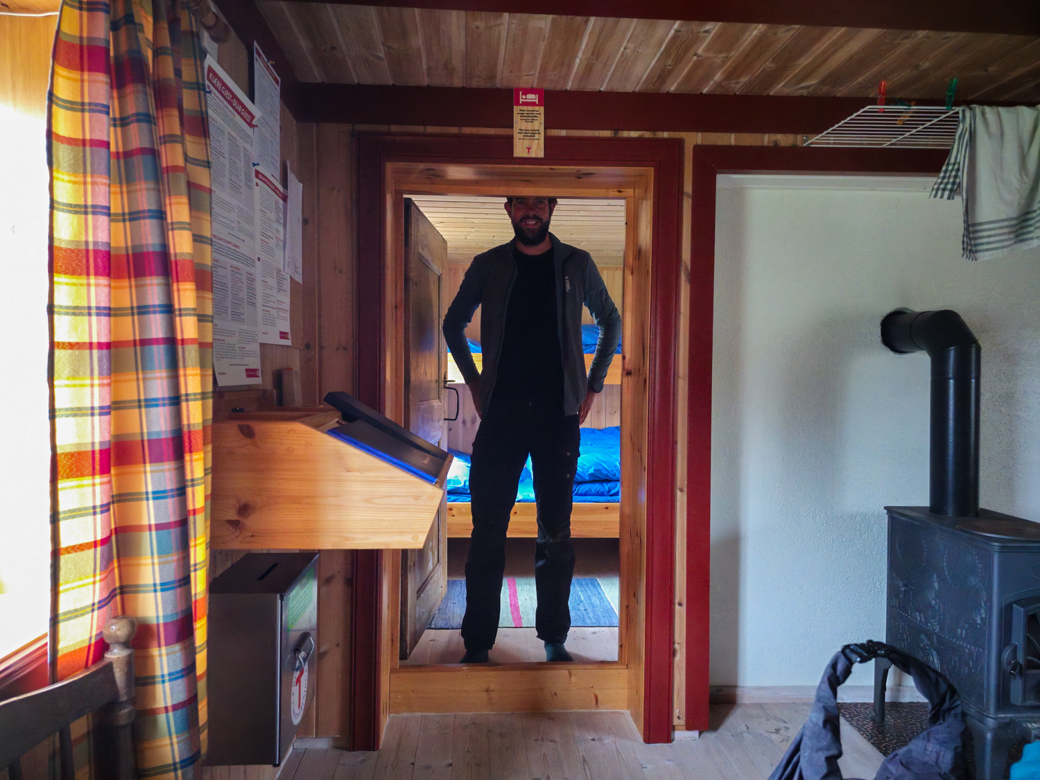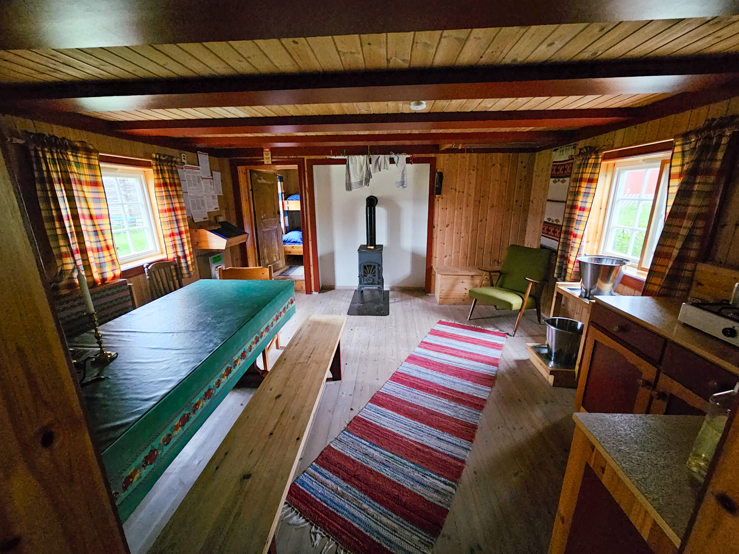 Wir wollen heute noch die Narjordet-Hütte erreichen, da es über Nacht und den nächsten halben Tag mindestens stark regnen soll. Wir glauben der Wettervorhersage mittlerweile nicht mehr viel, aber die Vorhersage für morgen hält sich nun doch schon seit Tagen hartnäckig… Da können wir es uns auch einfach am Ofen gemütlich machen.