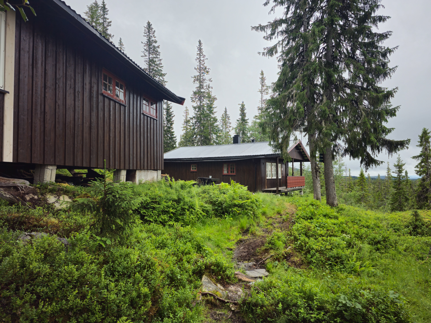 Jetzt sprechen wir aber eine Startzeit von halb 9 ab. Dann regnet es zwar noch, aber es müsste bald aufhören. Das ist dann erstmal immer noch ungemütlich, aber aushaltbar. Und nach 7 km kommen wir schon zur Skjækerdalshytta für eine warme Pause. Wir schätzen, dass wir 2 bis 2,5h brauchen werden. Im Sumpf geht es schließlich immer etwas langsamer.
