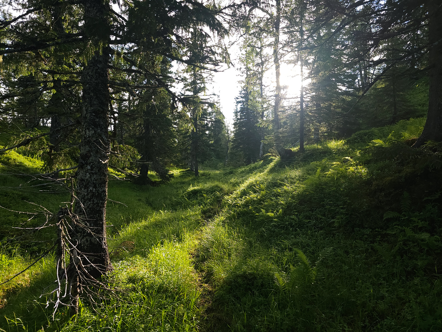 Mitten im Wald entdecken wir etwas unterhalb von uns plötzlich einen Wanderer. Der junge Norweger freut sich total, nach sieben Tagen endlich wieder mit jemandem reden zu können. Er sagt uns, dass der restliche Weg bis Gaundalen gut zu finden sei. Nur mit viel Sumpf. Erzähl mir doch mal einer was Neues…