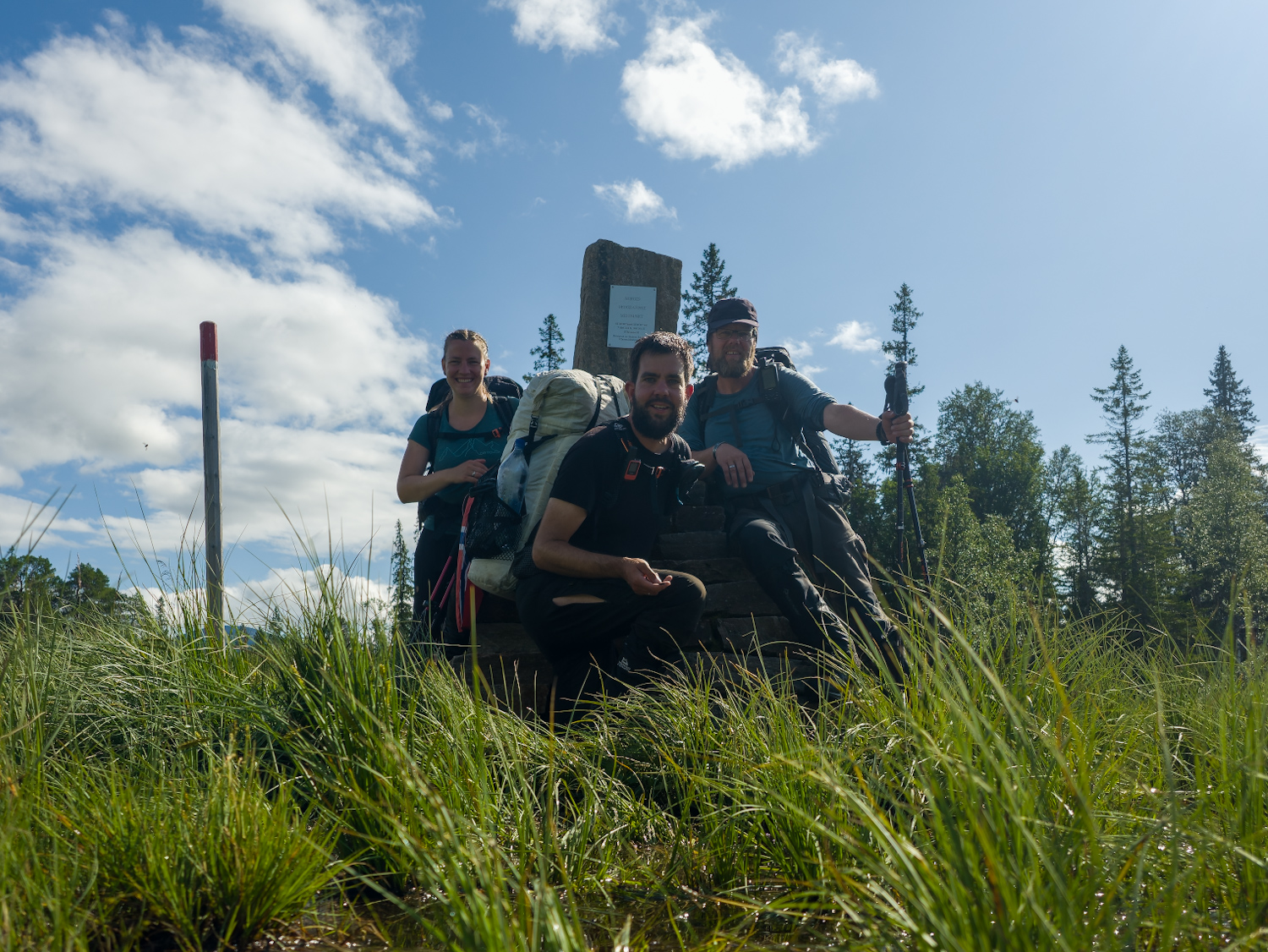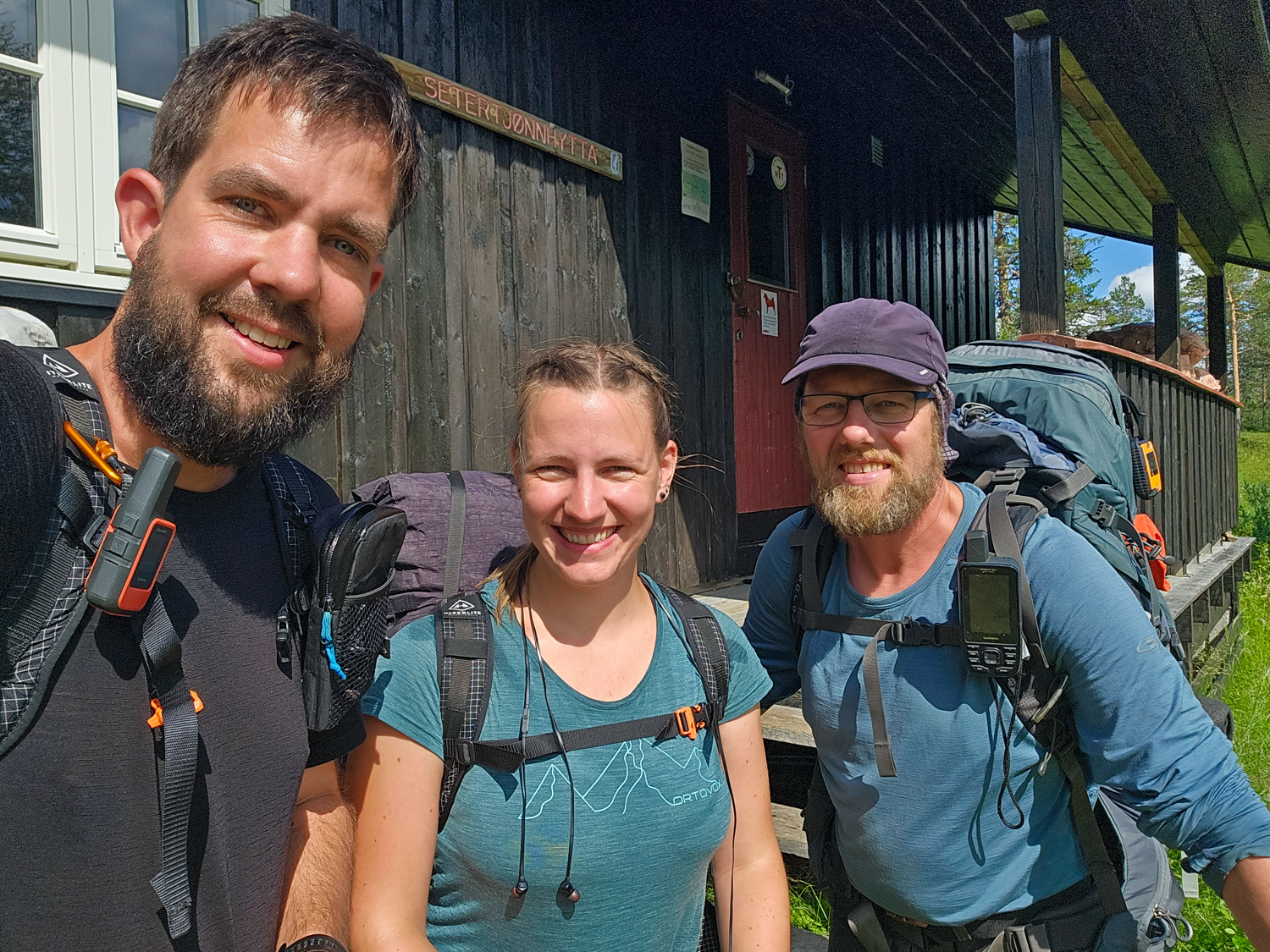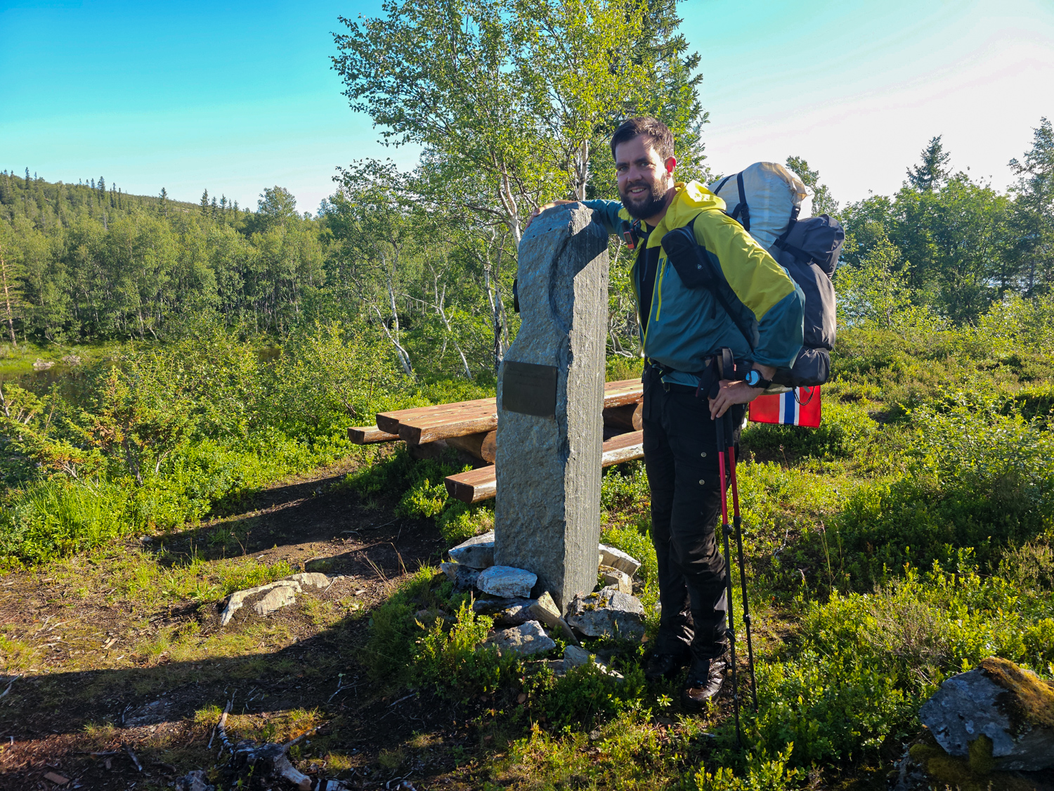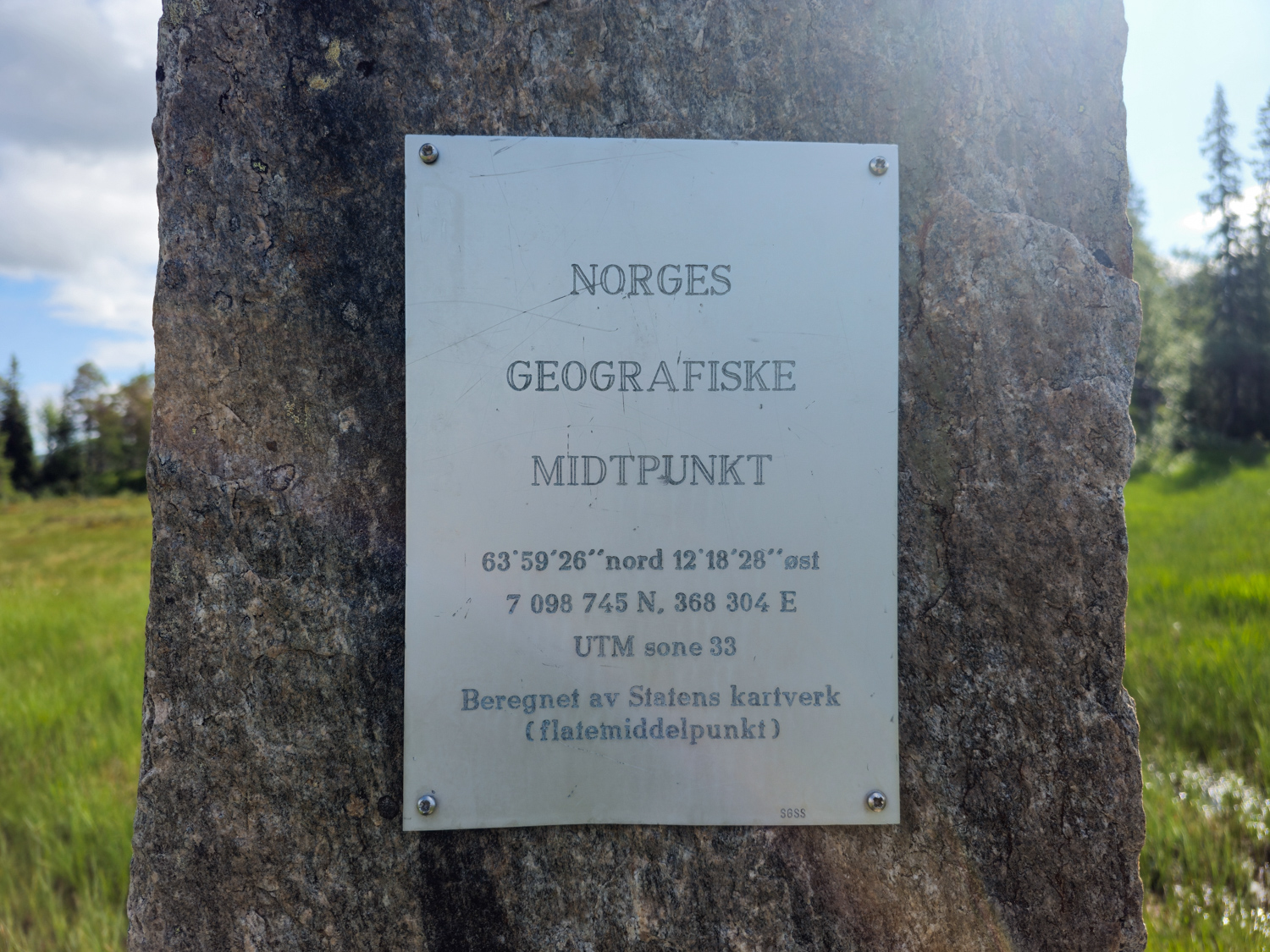 Dann nehmen wir die nächsten 7 km in Angriff. In der Setertjønnhytta wollen wir nämlich eine ausgedehnte Pause machen und auf dem Weg dorthin erwartet uns noch ein Highlight: der geografische Mittelpunkt Norwegens! Also los!