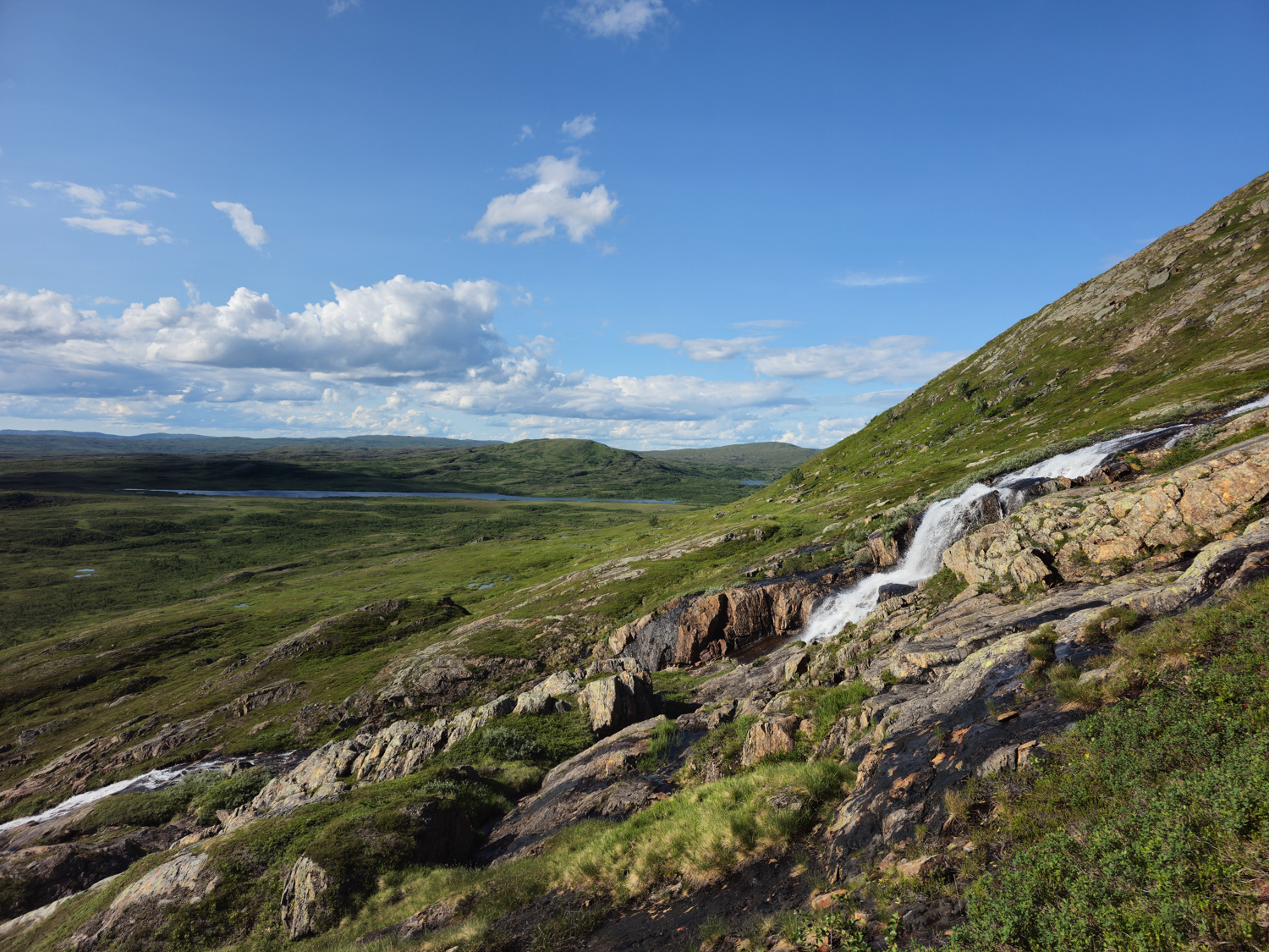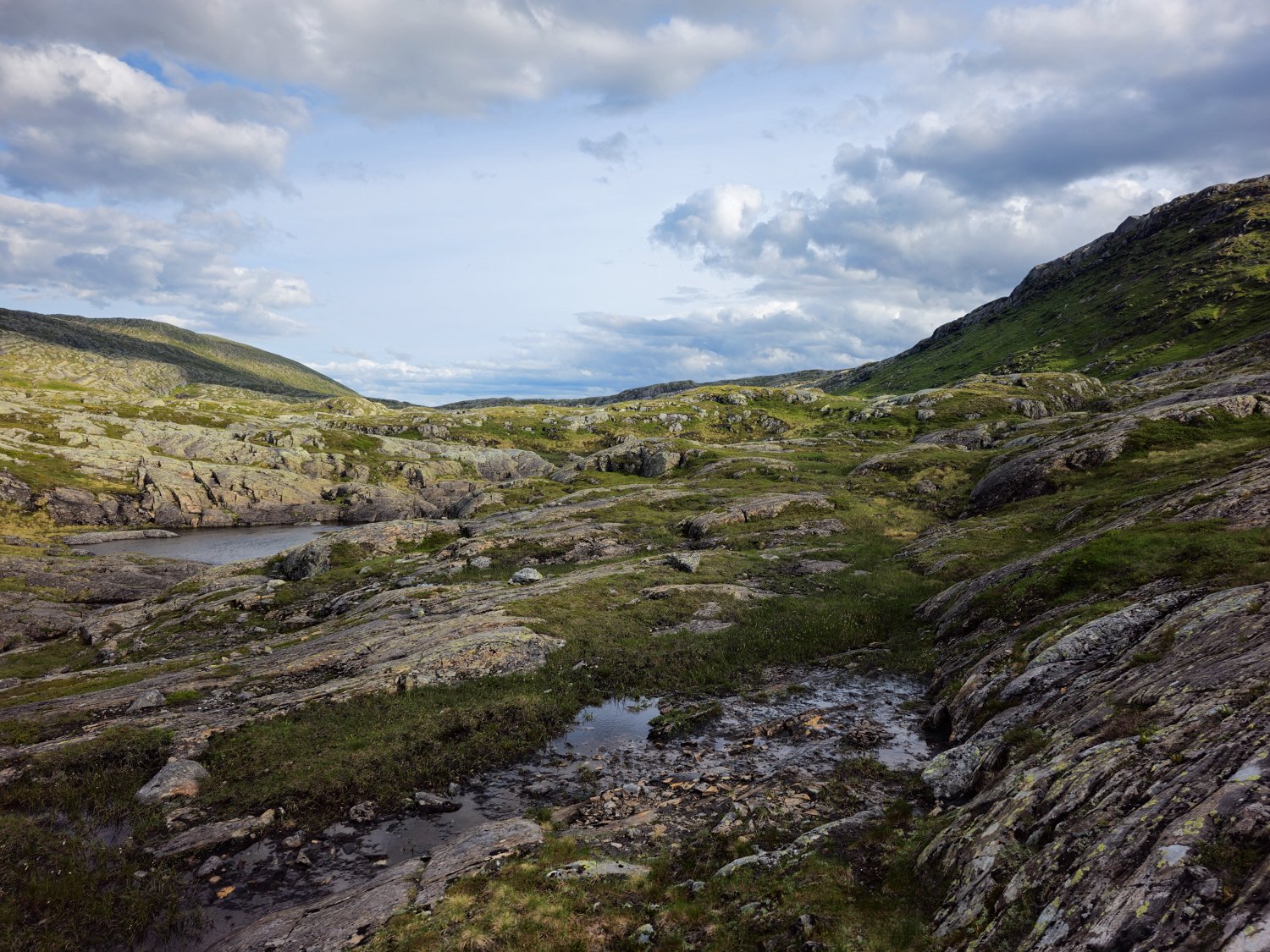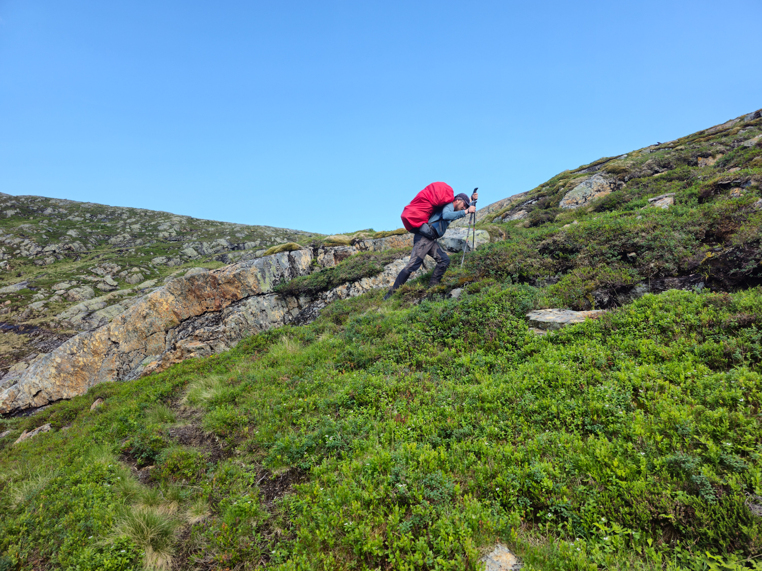 Aber die Bäche bereiten uns keine Probleme. Vor uns liegen heute 15 weglose Kilometer bis Gaundalen. Das schaffen wir also auf jeden Fall. Aber der Weg ist ziemlich anstrengend. Zumindest fühlt er sich für mich so an.