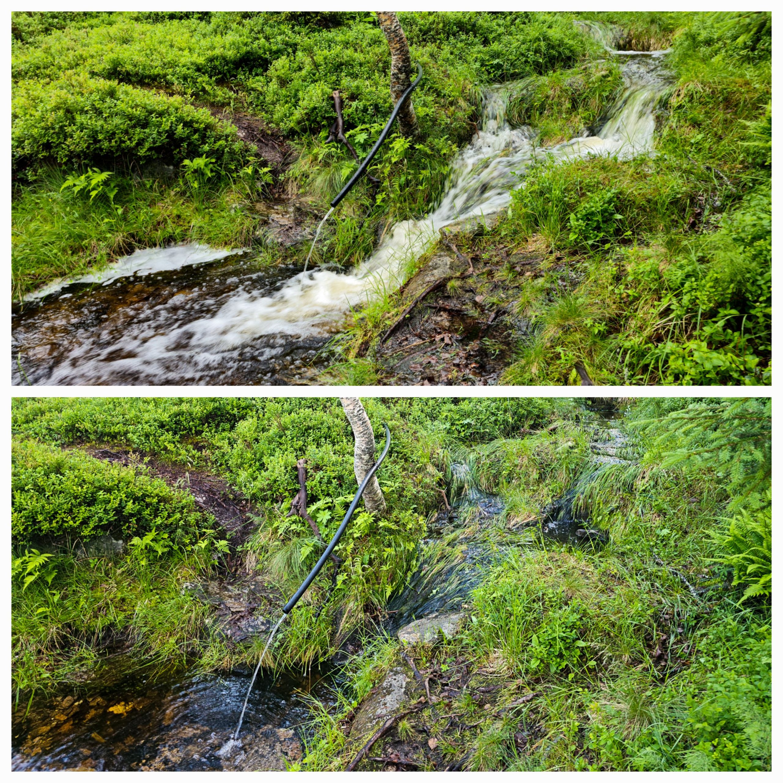 Und tatsächlich, jedes Rinnsal ist heute ein Rinnsal und jeder Bach nur ein Bach. Ich jubiliere bei jedem einzelnen – wir können sie ganz normal passieren.