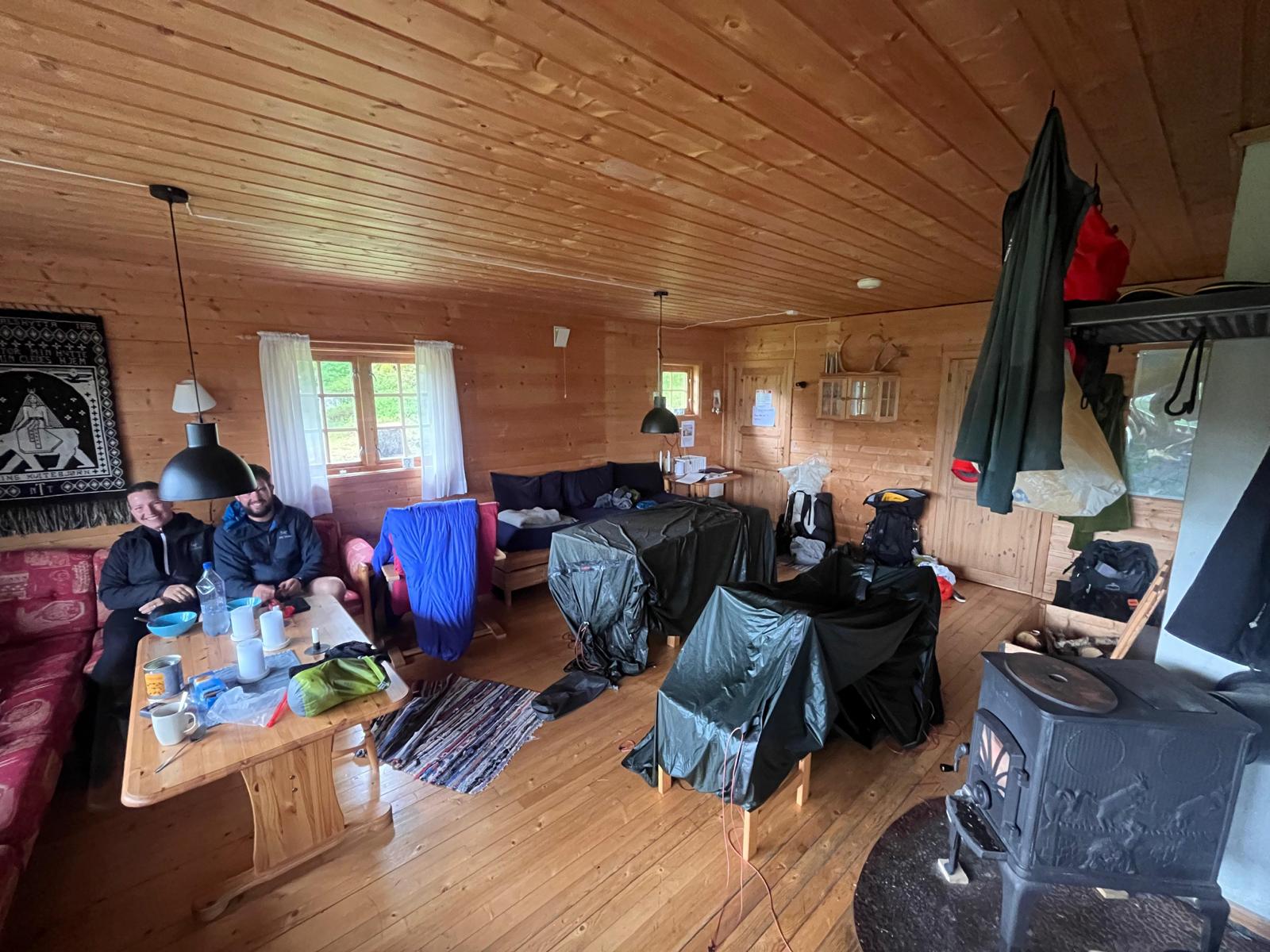 Im Haupthaus treffen wir in der Küche auf Hans Viktor und einen Freund, der ihn auf seiner NPL-Tour ein Stück begleitet. Hans Viktor ist anscheinend in Norwegen relativ bekannt und so eine Art Influencer. Zumindest „kennen“ wir ihn schon von Facebook/Instagram. Die beiden gehen aber heute noch weiter und so sitzen wir bald darauf alleine in der Küche und genießen das WLAN. Das gibt es nämlich nur hier. Handynetz gibt’s hier gar nicht.