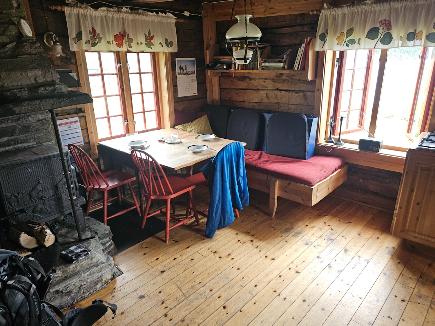 Aber natürlich schauen wir auch in die Nystuggu und entdecken ein Vorratsregal. Damit haben wir hier irgendwie gar nicht gerechnet! Ein Traum! Also kochen wir uns ein Mittagessen, genießen einen heißen Kakao und lassen derweil unsere Sachen vom heißen Ofen trocknen.