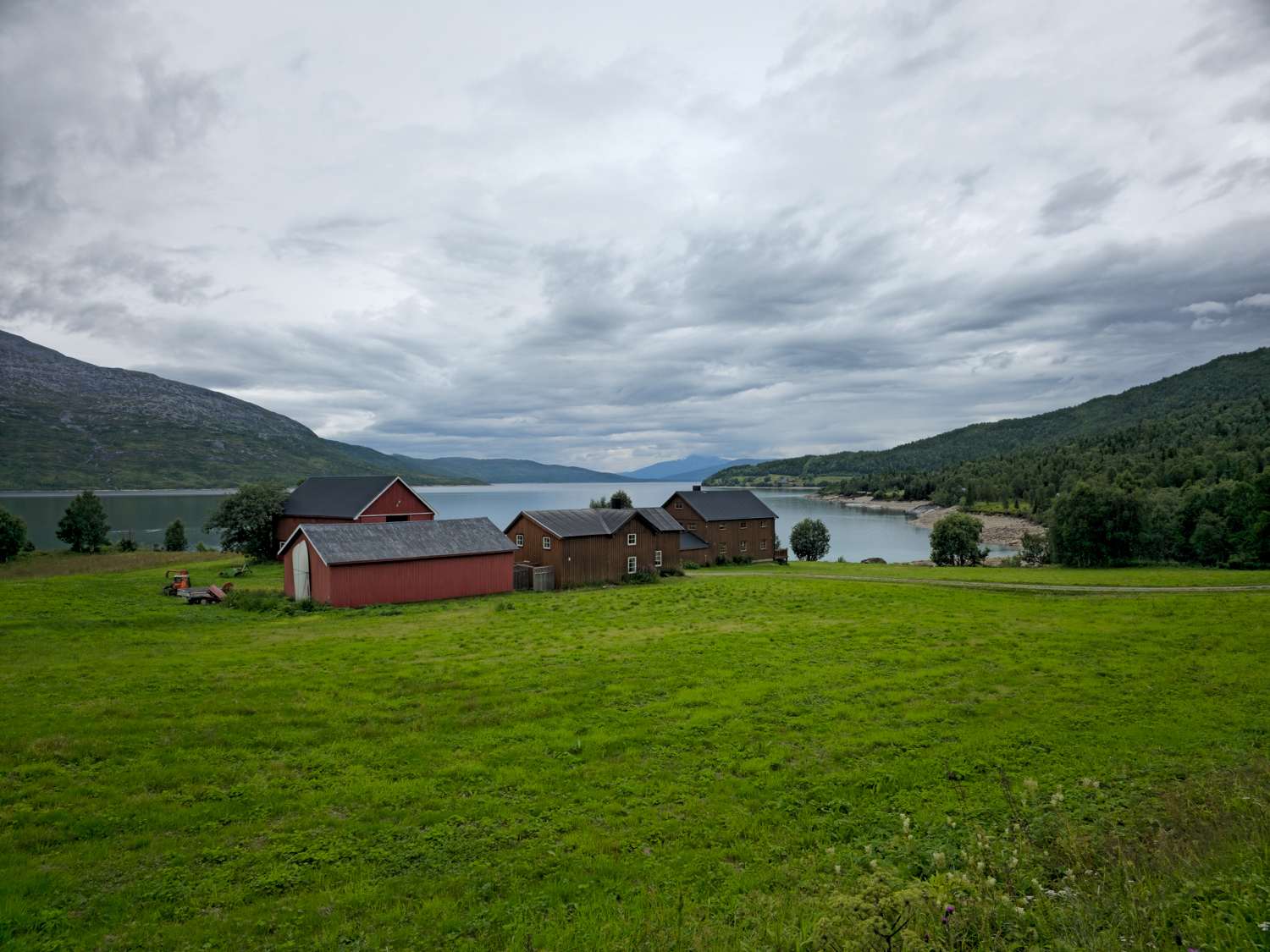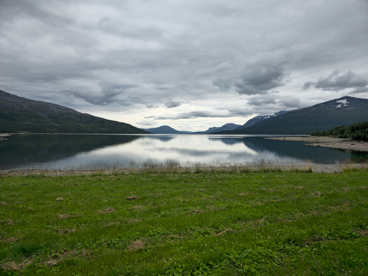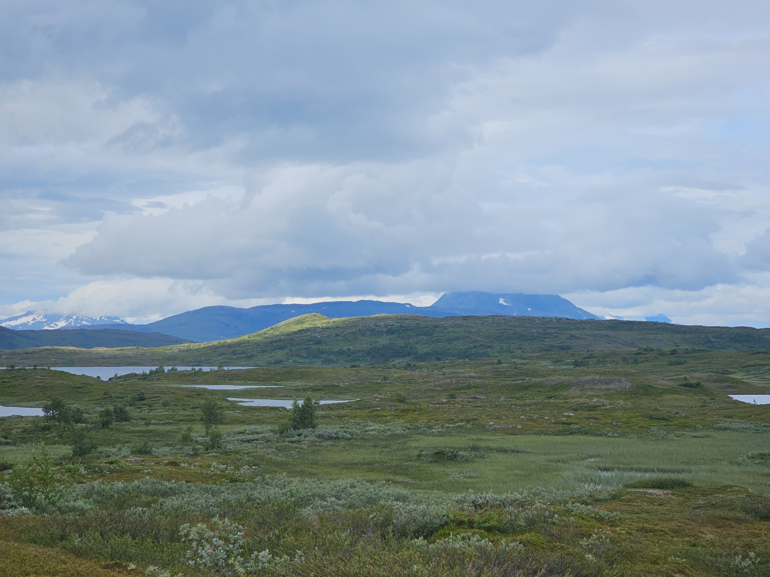 Immer mal wieder erreichen uns leichte Schauern, später eine sehr ausgeprägte und dicke. Die Landschaft ist auf diesem Teil der Nordlandruta nicht ganz so spektakulär, aber das ist Jammern auf wirklich hohem Niveau.