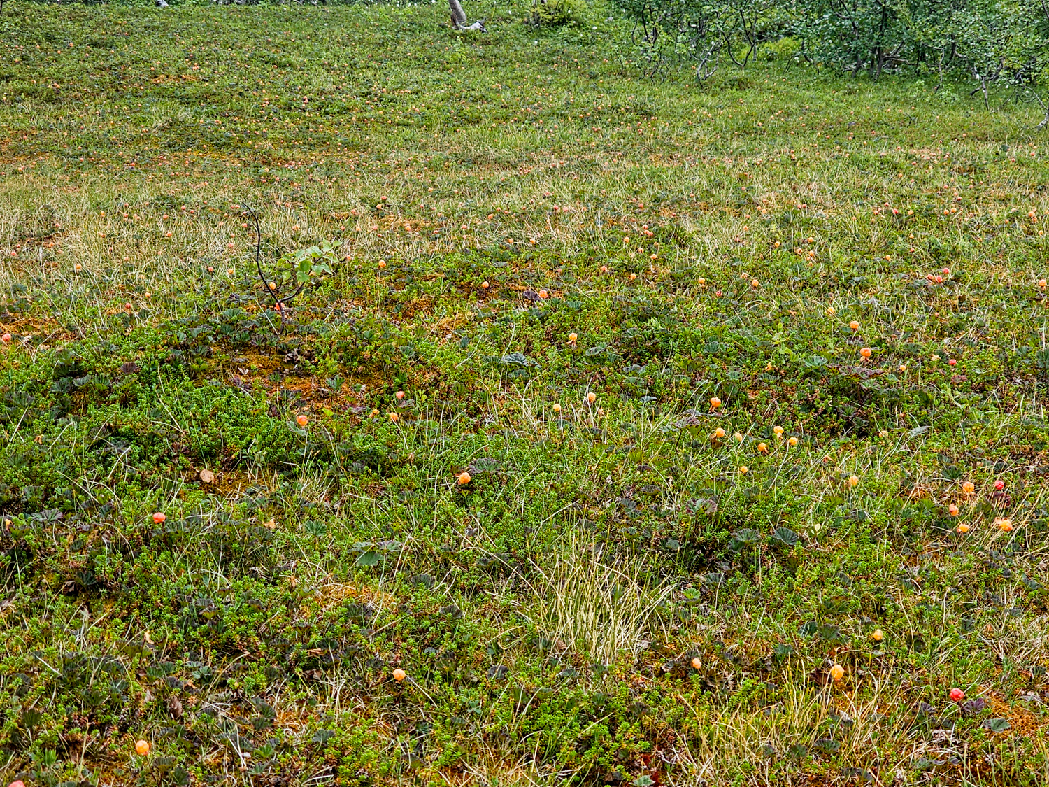 Es gibt jedoch ein Hindernis unterwegs, das uns sehr, sehr langsam werden lässt. Erst vereinzelte Stellen, dann ganze Felder reifer Moltebeeren.