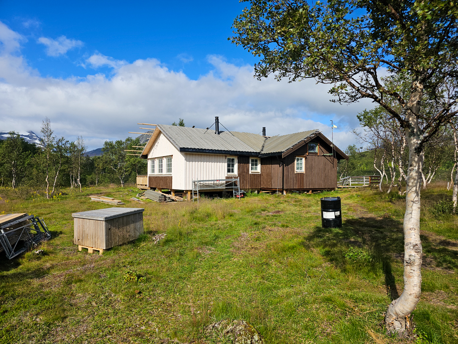 Kurz vor unserem Kilometerziel passieren wir noch die Grasfjellkoja, eine Nothütte, in die Daniel wohl eingezogen ist. Zumindest sehen wir seinen Spot-Sender draußen.