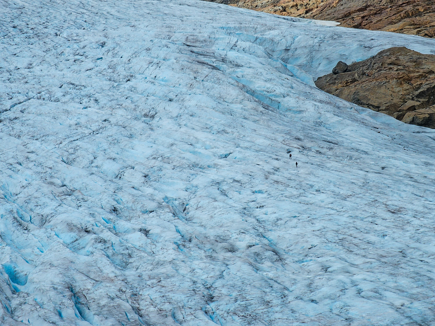 Während unserer Pause beobachten wir zwei Personen bei der Gletscherquerung.