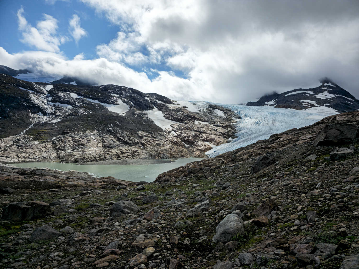 Auch wenn der Regen und meine sehr nassen Füße zuletzt doch ein wenig nervig waren, war das wirklich ein beeindruckender Tag! Wir haben vorab gedacht, dass es nicht so schlimm wäre, wenn wir den Okstindbreen wetterbedingt nicht sehen könnten, da wir schon so viele Gletscher gesehen haben, aber jetzt, im Nachhinein, wäre das doch sehr schade gewesen. Wir hatten also wieder einmal ein riesiges Wetterglück! Das war ein toller Abschluss für diese Etappe, auch wenn sie natürlich noch nicht ganz beendet ist.
