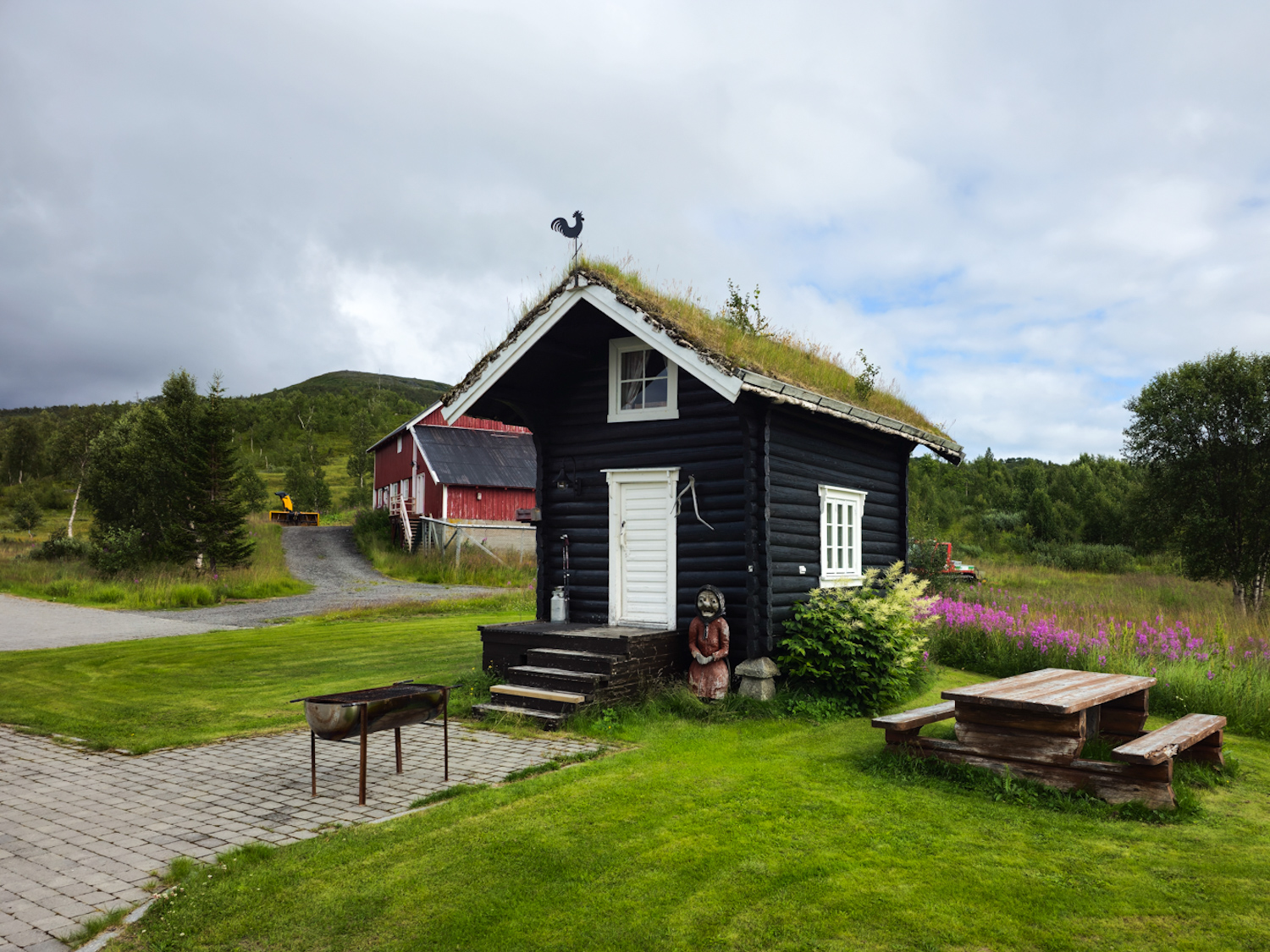 Das alte Ehepaar hat anscheinend leichte Schwierigkeiten, zu erkennen, wer hier zu wem gehört und dass wir keine zusammengehörende Wandergruppe sind. So bitten wir einfach um ein Doppelzimmer, bekommen aber erst die kleine und super gemütliche Wanderhütte gezeigt, das Stabburet, in dem NPLer eine Nacht kostenlos schlafen dürfen.
