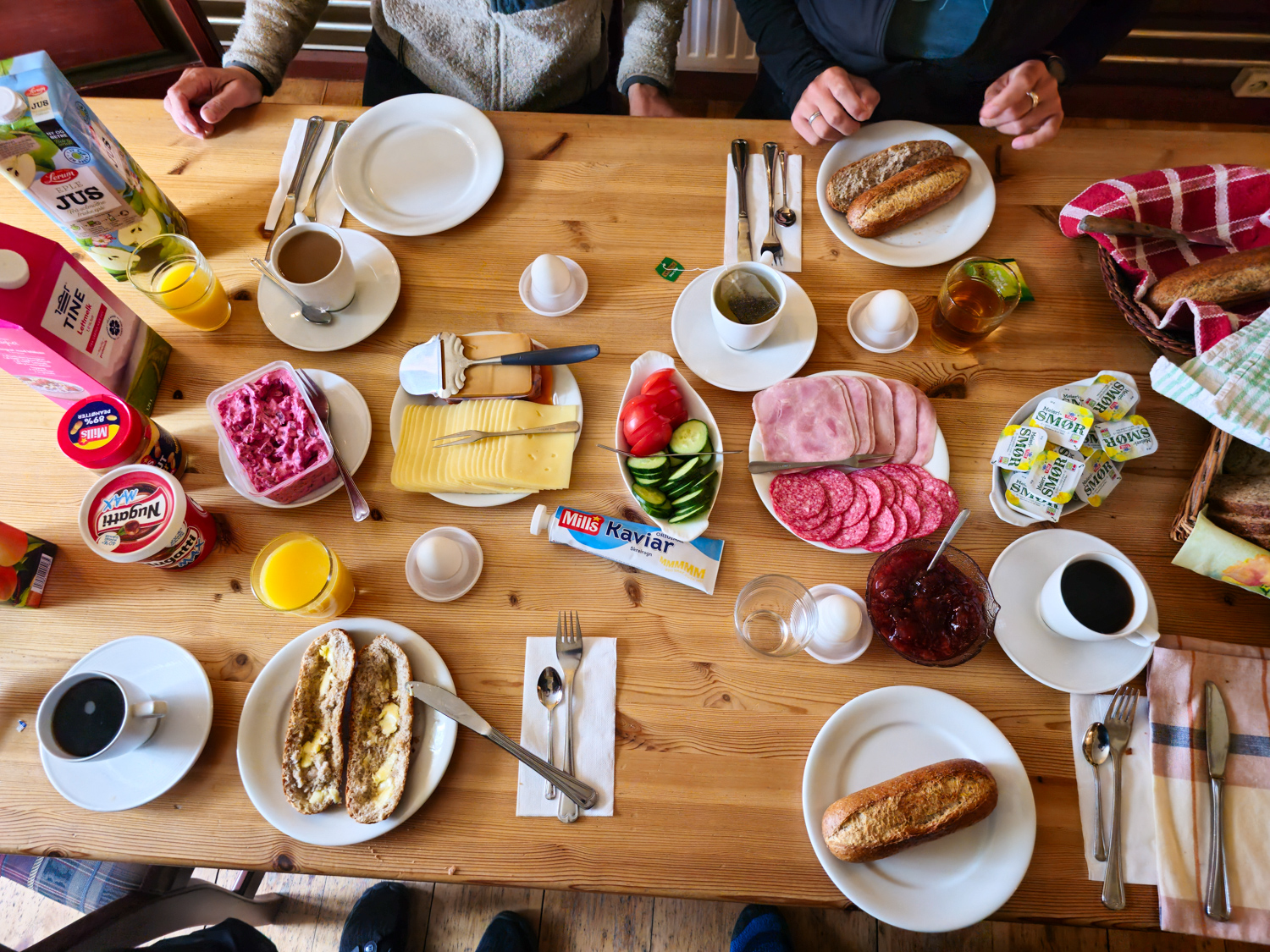 Wir haben uns um 9 Uhr für das Frühstück angemeldet und freuen uns schon sehr darauf. Da merkt man richtig, wie Deutsch man ist: endlich wieder Brot!