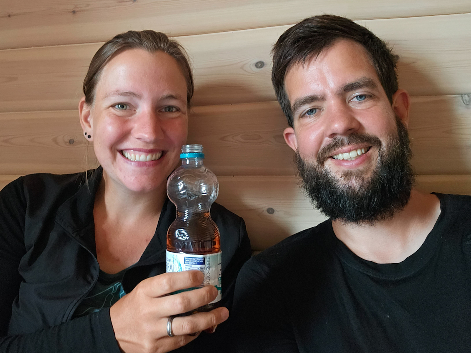 Danach ist es Zeit für ein Videotelefonat. Denn wir haben noch Glückwünsche an das frisch vermählte Brautpaar Ruth und Merlin zu übermitteln. Man mag es kaum glauben, aber gestern hatten sie da irgendwie keine Zeit für. Wir stoßen auf das Brautpaar aus der Ferne mit einem Whiskey aus unserem Versorgungspaket an.