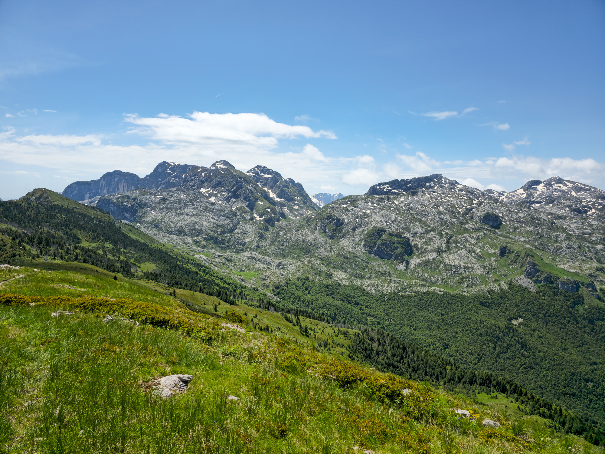 Dazu noch eine kleine Ergänzung: Laut Wanderführer (das Buch von Rother) geht man auf dem Weg von Plav nach Vusanje eine Forststraße hoch (stimmt), dann ein kurzes Stück steil durch den Wald und zack – steht man auf der Hochebene. Ich weiß nicht, in welchem umnachteten Moment diese Routenbeschreibung verfasst wurde, aber das entspricht mal gar nicht der Realität. Was für ein anstrengender, vielfältiger und wahnsinnig schöner Tag heute!