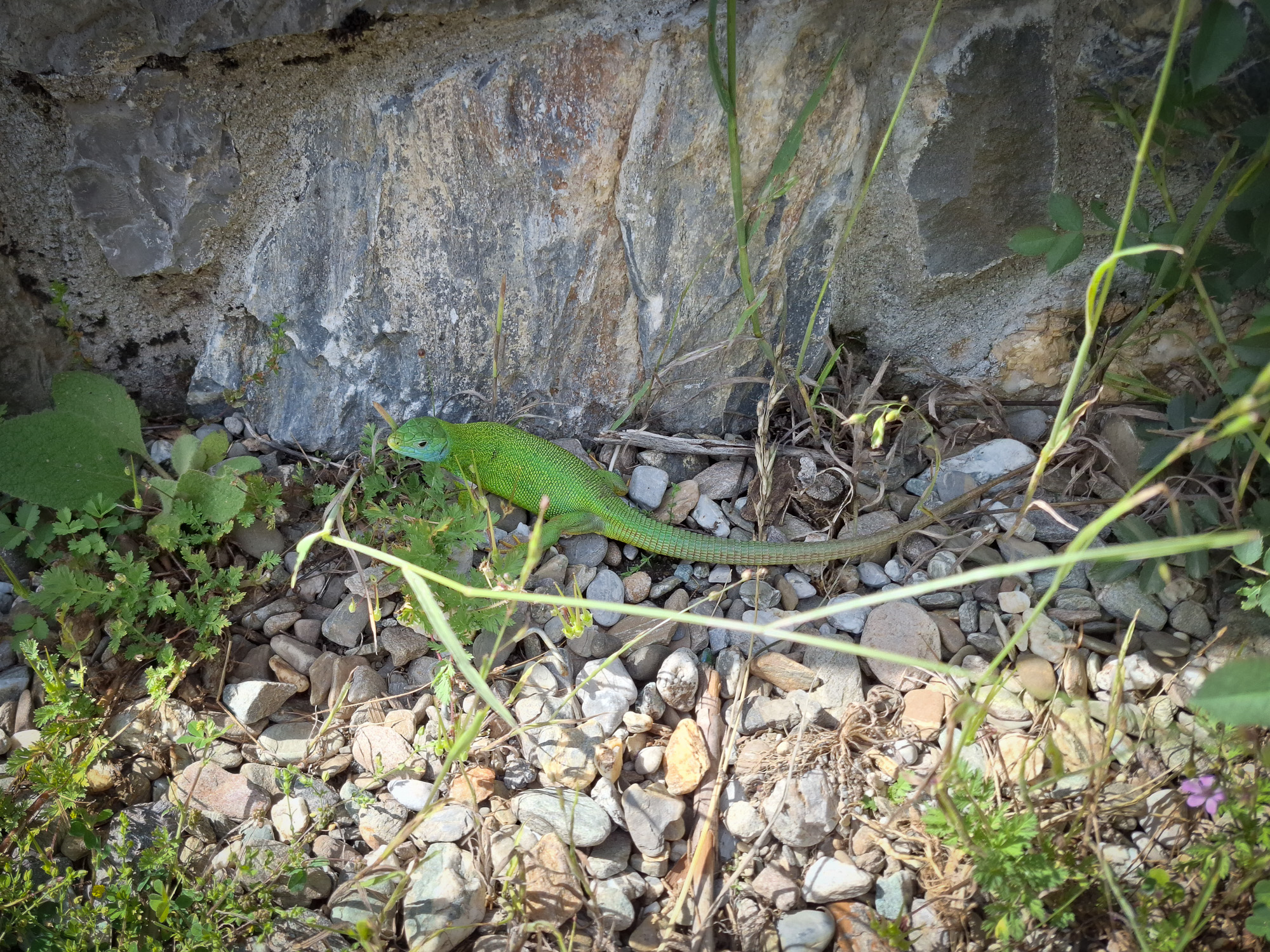 Auch wenn das nicht ganz die Pause war, die wir uns vorgestellt haben, hat sie doch zum Energie tanken gereicht. Wir machen uns wieder auf den Weg, sehen dabei eine Smaragdeidechse…