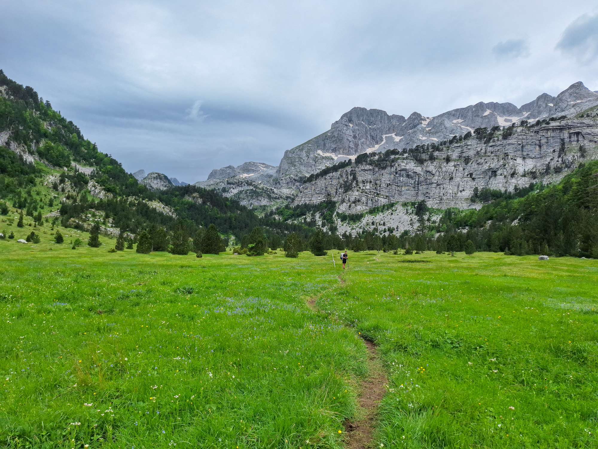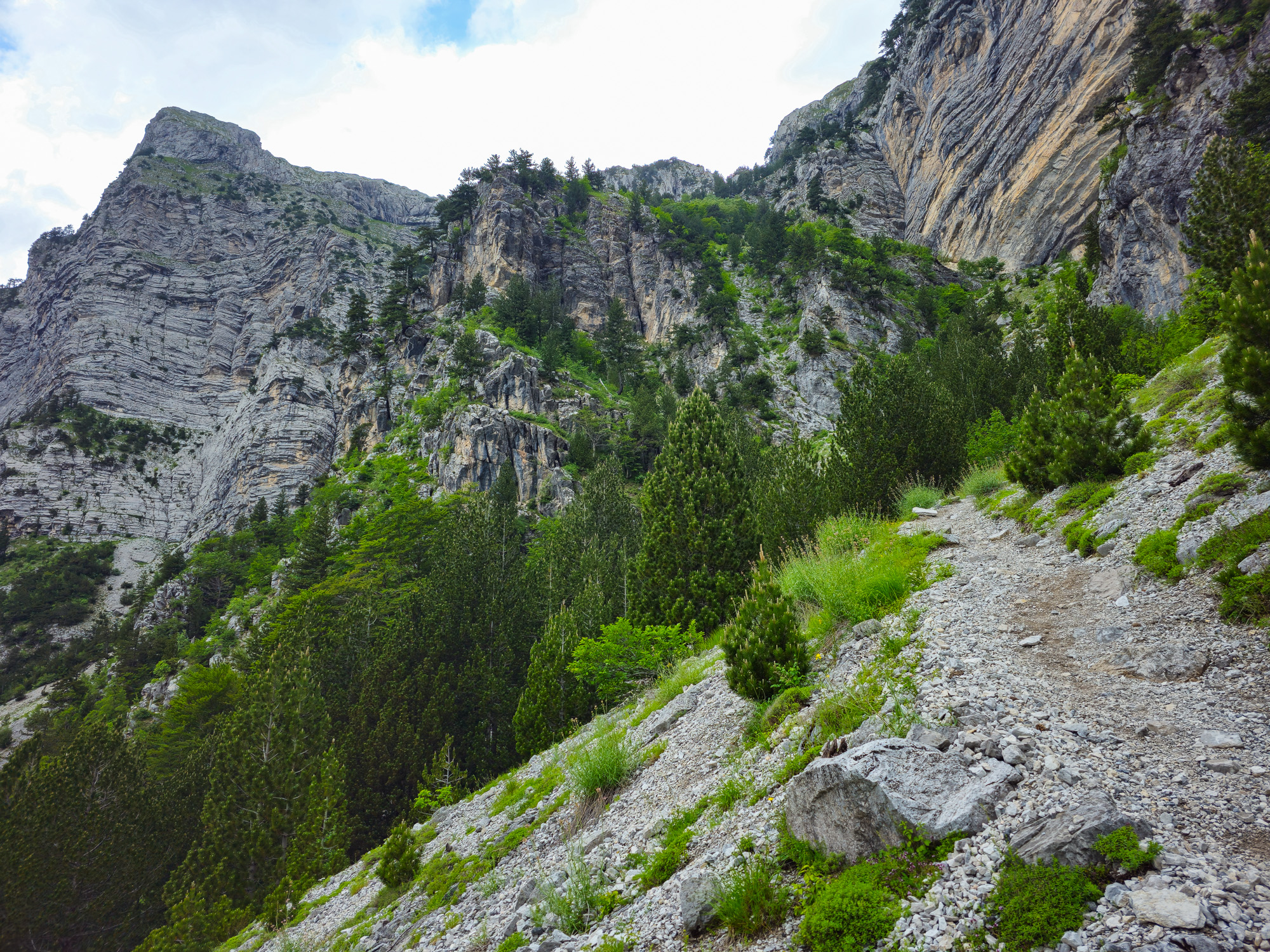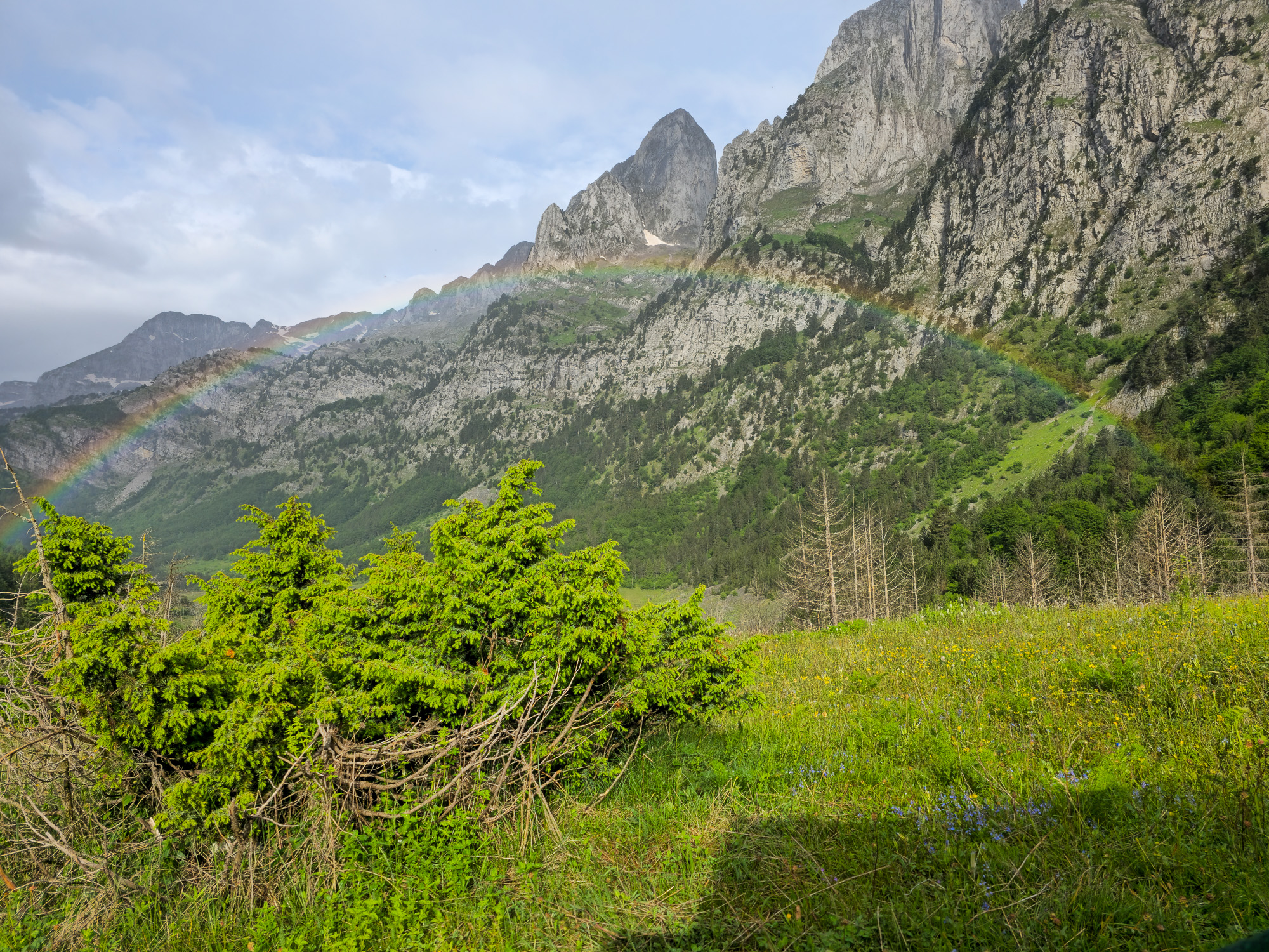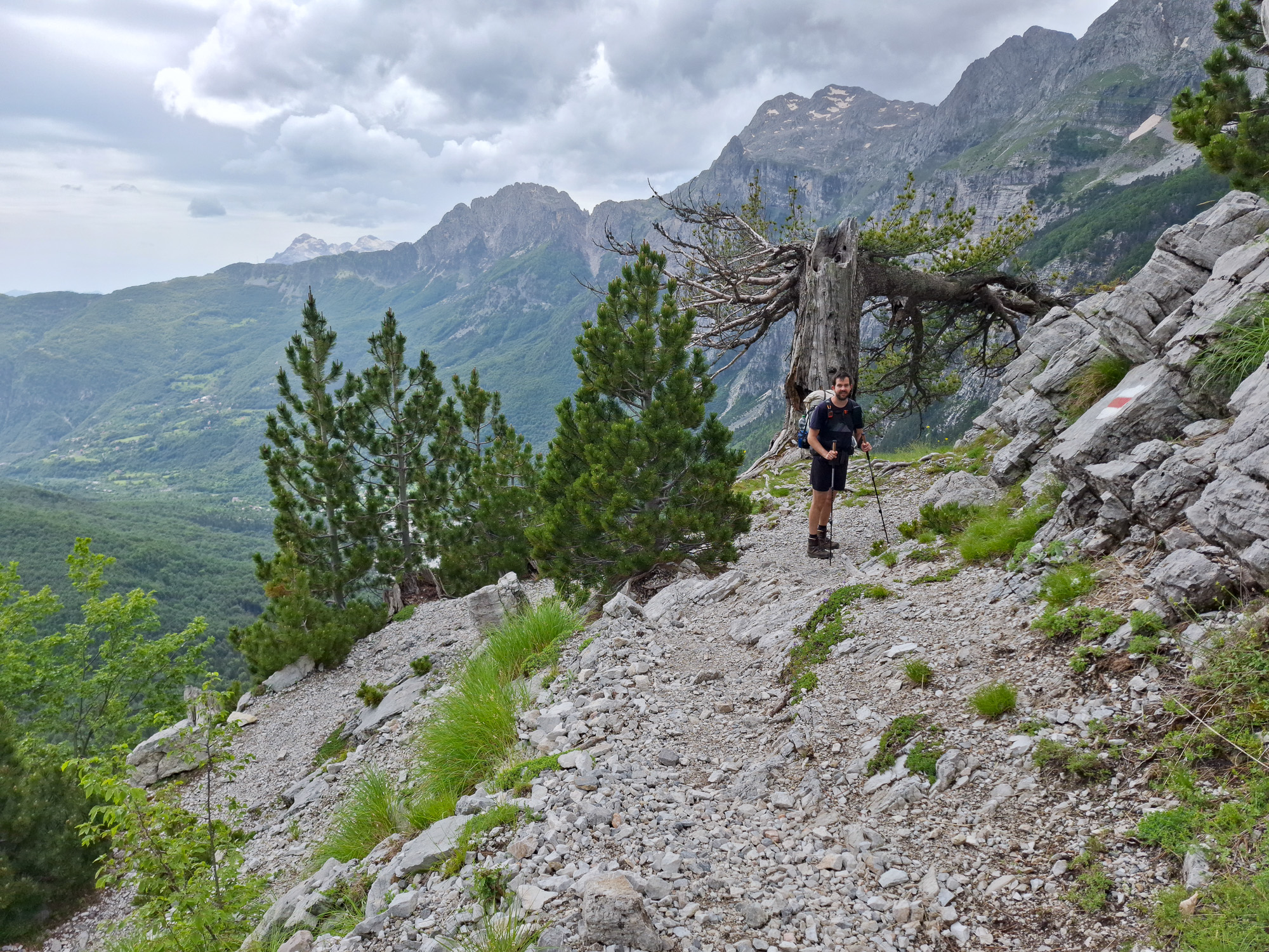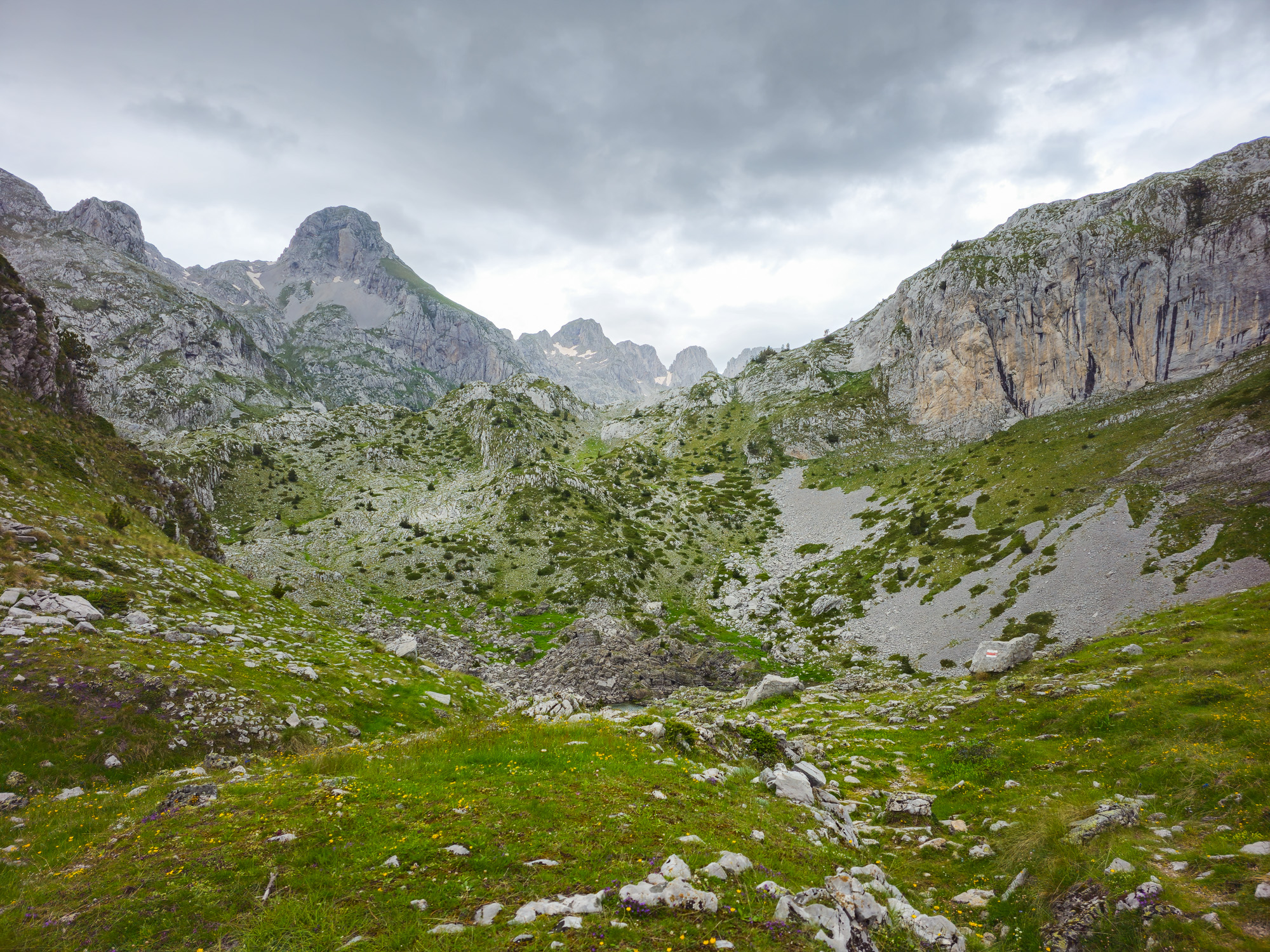 Wir folgen dem Weg für die nächsten Stunden langsam bergab Richtung Vusanje und bleiben immer wieder staunend stehen. Jede Kurve verändert den Blickwinkel und es bleibt atemberaubend. Wir sehen jetzt den Prosllopit-Pass, über den wir in ein paar Tage in eben dieses Tal gehen werden.