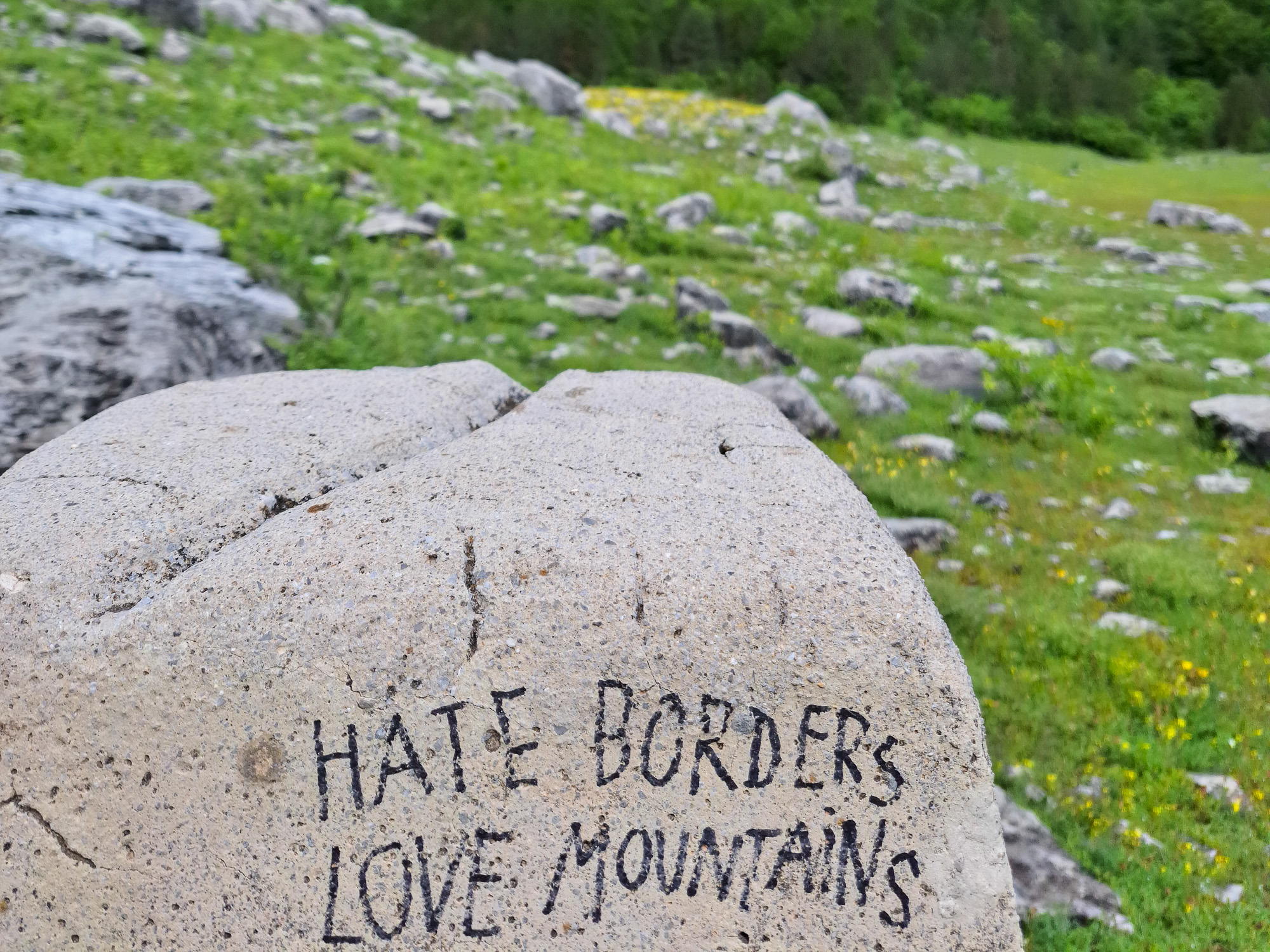 Leider ist der Weg nur kurz und der nächste Aufstieg wartet. Kurz davor überschreiten wir aber noch die Grenze nach Albanien.