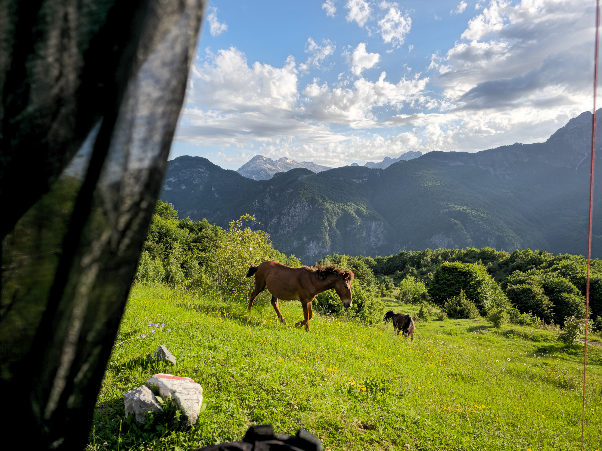 Wir sind völlig erledigt, können die Erlebnisse der Nacht kaum fassen und wollen nur noch weg von hier. Wölfe oder Bären, das sind doch die kritischen Tiere im Balkan. Aber ein einzelnes Pferd? Wir können es einfach nicht glauben.